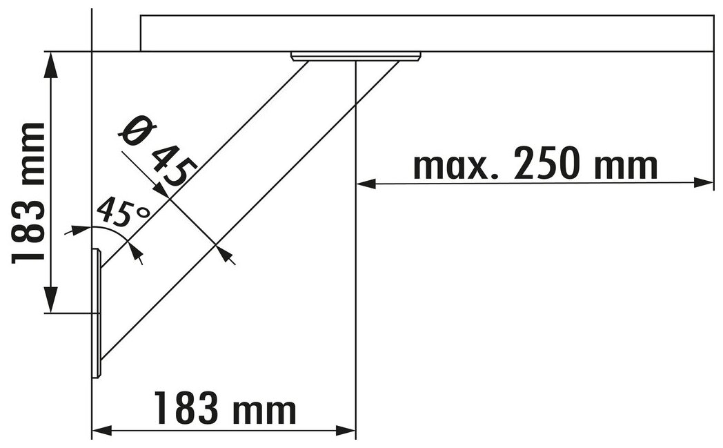 Der Konsolenträger Capitello 3 sorgt durch seine schräg verlaufende Anordnung für ein Highlight in der Küchenplanung. Er lässt sich beliebig an der Seitenwand von Unterschränken oder der Raumwand befestigen und schafft einen modernen Essplatz in der Küche. Sein zeitlos-elegantes Design besteht aus einem Rundrohr mit einer Stärke von 45 mm und zwei ebenfalls runden Montageplatten. Davon dient die eine als Auflage für eine Holzthekenplatte, die von unten verschraubt werden kann. Wenn eine Glastheke zum Einsatz kommen soll, wird eine optional erhältliche Glasadapterscheibe aus Edelstahl erforderlich. Die Tischkonsole punktet durch ihre hohe Materialgüte und die Verarbeitungsqualität. Im paarweisen Einsatz und bei gleichmäßiger Lastverteilung stellt sie eine Tragkraft von bis zu 40 kg zur Verfügung. Zur Auswahl stehen unterschiedliche Oberflächenausführungen, die mit unempfindlichen und pflegeleichten Eigenschaften bestechen. Vorgesehen ist die Konsole zur senkrechten Montage an der Korpus-Seitenwand.