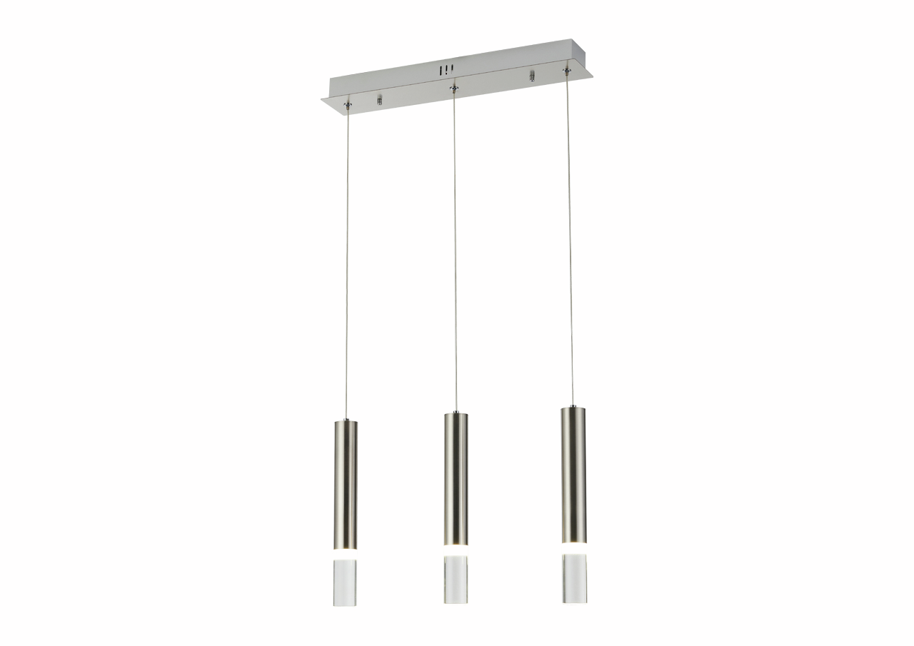 Mit der Pendelleuchte Gwen 3 LED lässt sich das Raumambiente elegant gestalten. Die Deckenleuchte besteht aus drei stabförmigen Elementen im Aluminiumgehäuse. Dazu sind weiße Kunststoffabdeckungen für die Lampenkörper kombiniert. Über einem Esstisch oder der Küchentheke platziert, sorgt die dreiflammige Pendelleuchte für eine angenehme Lichtstimmung mit heller Ausleuchtung. Zur Ausstattung gehört eine Deckenbefestigung in Leistenform, die eine einfache Schraubmontage bietet. Dabei lassen sich die Höhen der Pendel beliebig anpassen. Mit dem zugehörigen Konverter kann eine individuelle Lichtsteuerung vorgenommen werden. Die Ein-/Ausfunktion erfolgt über den bauseitigen Lichtschalter. Zur Auswahl stehen unterschiedliche Gehäusefarben und verschiedene Lichtfarbbereiche.