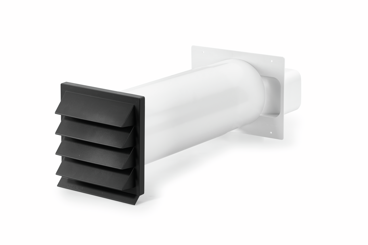 Der COMPAIR® flow K-Klima-R flow 150 Mauerkasten eignet sich zum Anschluss an die Abluftleitung und schafft eine Verbindung zwischen Innen- und Außenraum zum Abführen von Abluft. Da er zum Luftkanalsystem COMPAIR® flow gehört, wird der Wrasen im Luftkanal geglättet und mit minimalem Strömungsverlust nach außen transportiert. Auch eine hohe Luftleistung und geringe Betriebsgeräusche zeichnen das patentierte System aus. Die Mauerdurchführung hat eine Rechteckaufnahme mit den Maßen von 227 mm x 94 mm für einen Flachkanalanschluss. Da das Rohr teleskopierbar ist, lässt es sich individuell für eine Wandstärke von 420-620 mm nutzen. Zusätzlich kann es auf eine Länge bis 135 mm gekürzt werden. Sein Durchmesser beträgt 150 mm, wodurch ein Wanddurchbruch von ca. 155 mm erforderlich ist. Als praktisches Extra erweist sich die Rückstauklappe, durch die keine Luft von außen durch das Rohr in die Küche gelangen kann. Zum langfristigen Schutz vor Witterungseinflüssen ist der Abluft-Mauerkasten mit einer Außenjalousie ausgestattet. Nach den persönlichen Vorlieben stehen mehrere Farbvarianten zur Auswahl.