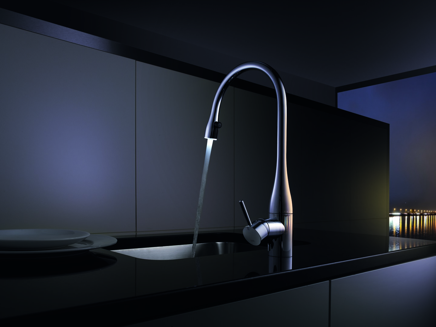 — im Brausekopf integrierte LED beleuchten den Wasserstrahl und schaffen eine hinreißende Lichtskulptur