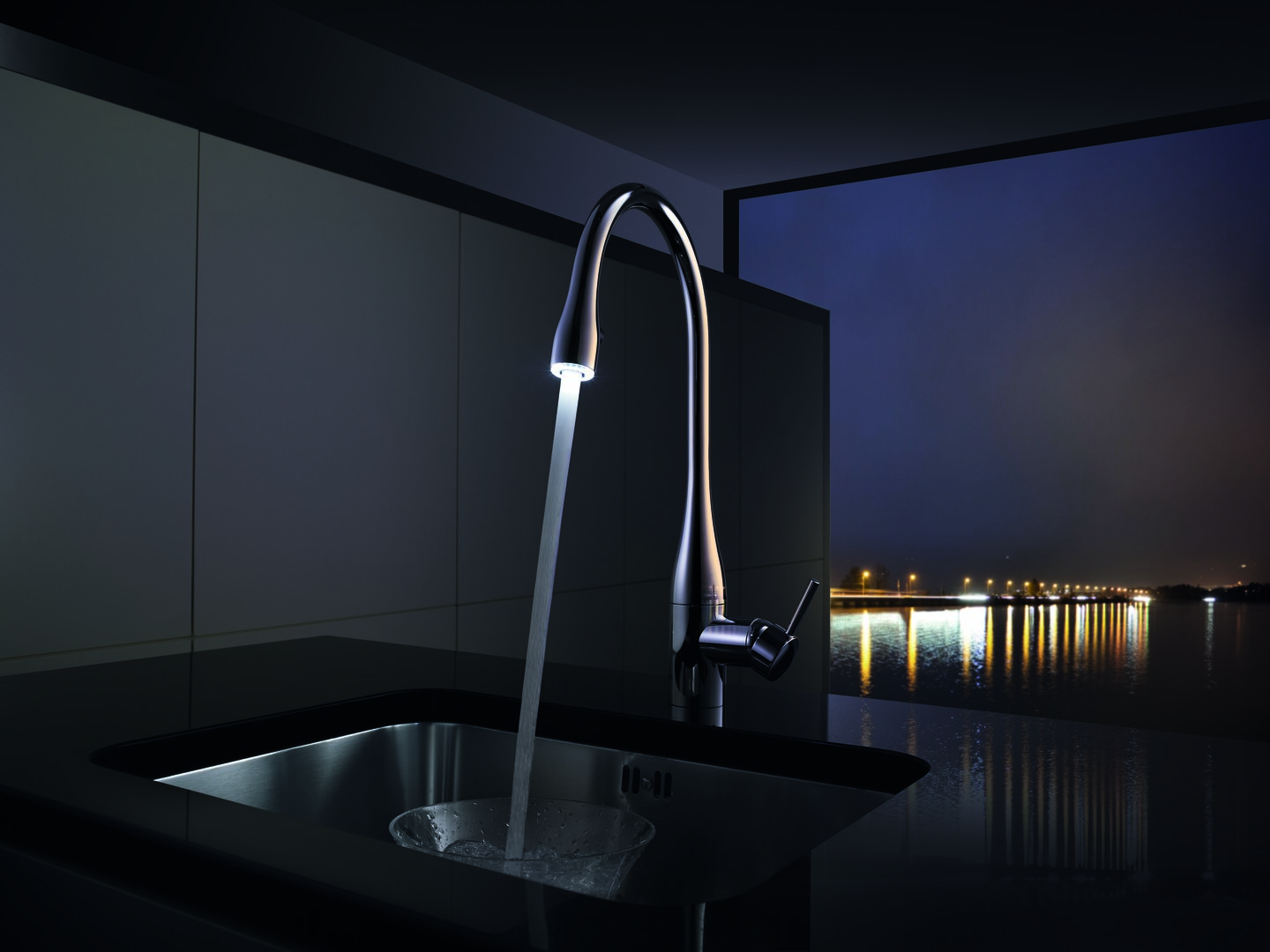 — Auf Knopfdruck inszeniert LED-Shine einen Lichttanz mit dem Wasserstrahl der Armatur. Nach 45 Minuten schaltet sich das Licht automatisch aus.