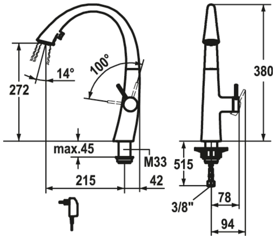 — Positionierung des Hebels nur rechts möglich (Sicherheit für Kinder: Kaltwasser bei Hebelposition vorne)