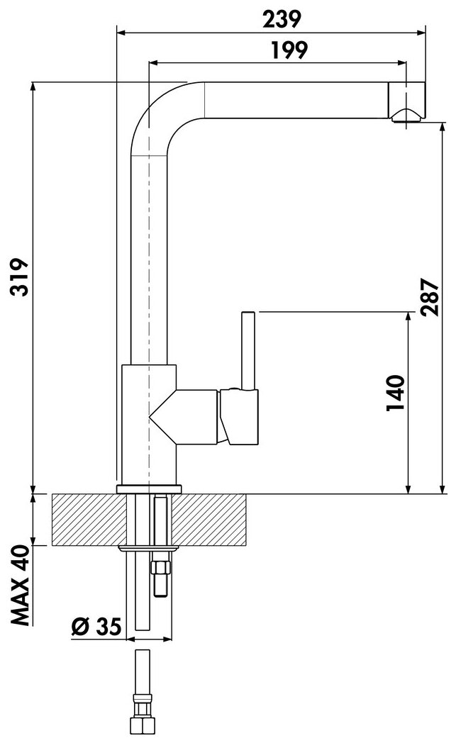 Einhebelmischer. Mit schwenkbarem Auslauf, seitlichem Hebel, Laminarstrahlregler und Keramikkartusche.