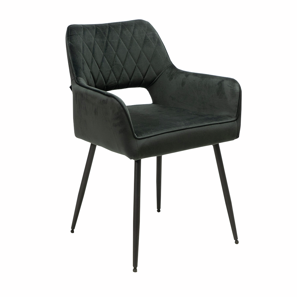 Der Armlehnenstuhl Lera 1V setzt einen attraktiven Designakzent in Küche und Esszimmer. Er zeichnet sich durch einen modernen Look aus und fällt durch seine offene Rückenlehne mit Rautenmuster auf. Mit seiner Samtoptik schafft der Küchenstuhl ein stilvolles Ambiente in der Einrichtung. Durch seine Armlehnen und die bequeme Sitzfläche bietet er einen angenehmen Komfort für gemütliche Abendessen. Der verwendete Samtstoff für Sitz und Rückenlehne besticht durch wasserabweisende Eigenschaften und lässt sich pflegeleicht reinigen. Da der Stuhl in vielen Farbvarianten bestellbar ist, lässt er sich perfekt auf die vorhandene Kücheneinrichtung abstimmen.