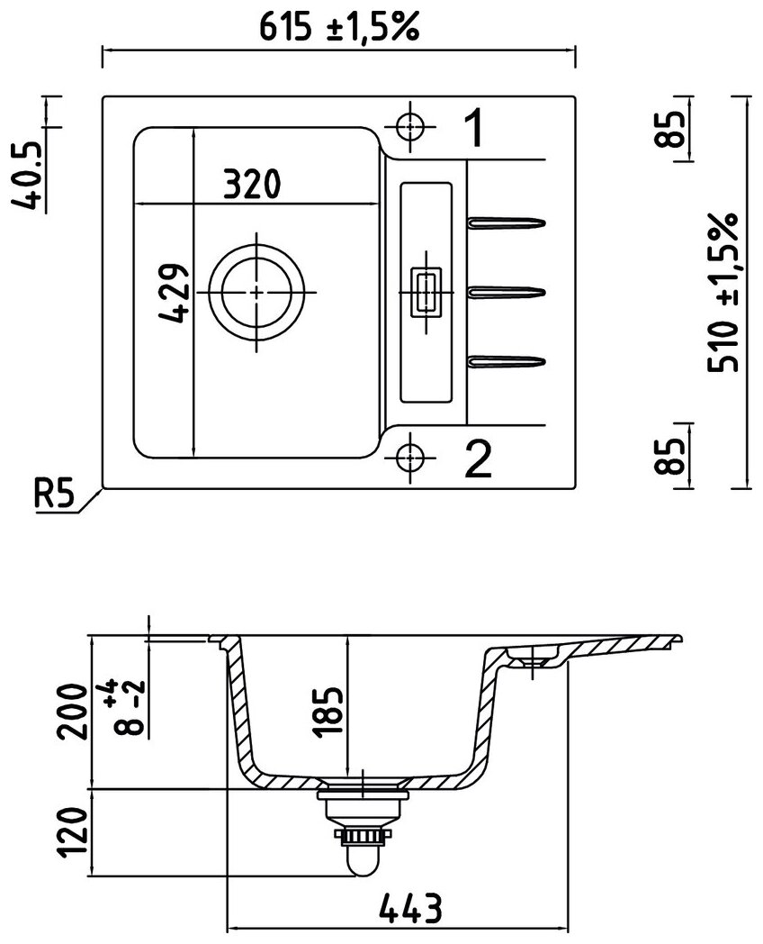 — Ausschnittmaß ca. 585 x 480 mm, R 5 mm