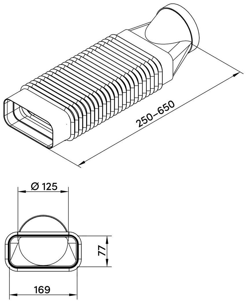 Der COMPAIR® flow MF-RBFLEX 2 System 125 Rohrbogen ist ein Verbindungselement von rund auf eckig. Es bietet ein hohes Maß an Flexibilität bei der Installation der Abluftanlage in der Küche. Das Lüftungsrohr mit Adapter erlaubt Umlenkungen und Drehungen innerhalb des Abluftsystems um bis zu 90° Grad. Abhängig von der Art der Nutzung liegt die Länge des Formteils in einem Bereich von 250–650 mm.
