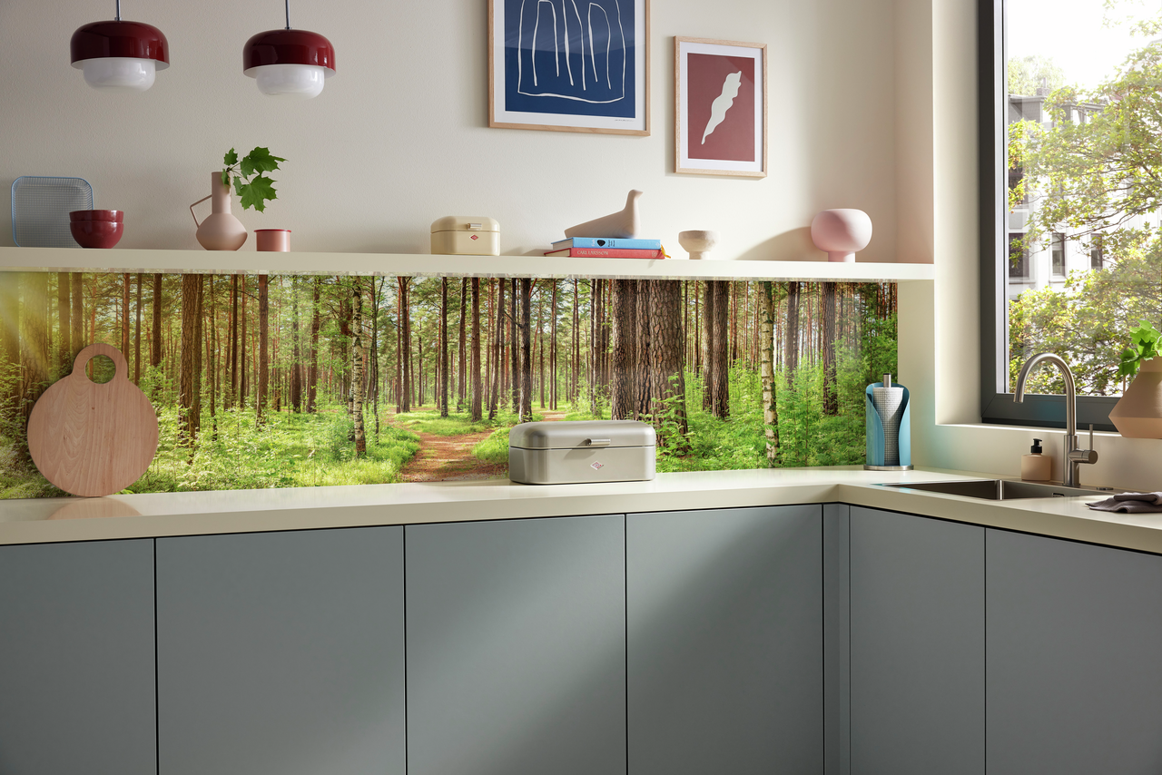 Dank der stilvoll reduzierten Farbgebung fügt sich der hochwertige Digitaldruck harmonisch in die geplante Küchenarchitektur ein. Mit einem UV Druckschutzlaminat ausgestattet, zeichnet er sich durch langlebige und pflegeleichte Eigenschaften aus. Format und Ausschnitt lassen sich innerhalb der Maximalgröße von 3050 mm bei einer Breite von 700 mm frei über den Naber Nischenrückwand-Konfigurator festlegen. Zu den weiteren Auswahlmöglichkeiten gehören Material und Materialstärke sowie das bevorzuge Oberflächendesign. Das Sortiment an PICit® Nischendesigns umfasst eine große Auswahl an kreativen Motiven und wird durch die RAL-Farben aus dem BASICit® Bereich ergänzt. Reizvolle MySCENEit® Unikate entstehen durch das Hochladen persönlicher Wunschmotive des Kunden in den Konfigurator.