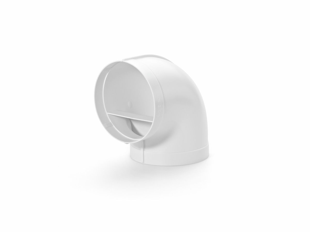 Der COMPAIR® flow R-RBV flow 150 Rohrbogen 90° mit beidseitigen Muffen bietet sich für den Direktanschluss einer Dunstabzugshaube in der Küche an. Hinsichtlich der Effizienz zeichnet sich das Systemelement durch die integrierte Leitkörpertechnologie aus. Sie sorgt bei minimiertem Druckverlust für eine verlustfreie Umlenkung der Abluft. Das Verbindungselement hat einen Durchmesser von 153 mm und bildet den optimalen Übergang zu Mauerkästen mit einem Rundrohranschluss. Dank des geringen Innenradius ist ein ecknahes Verlegen des Formteils möglich.