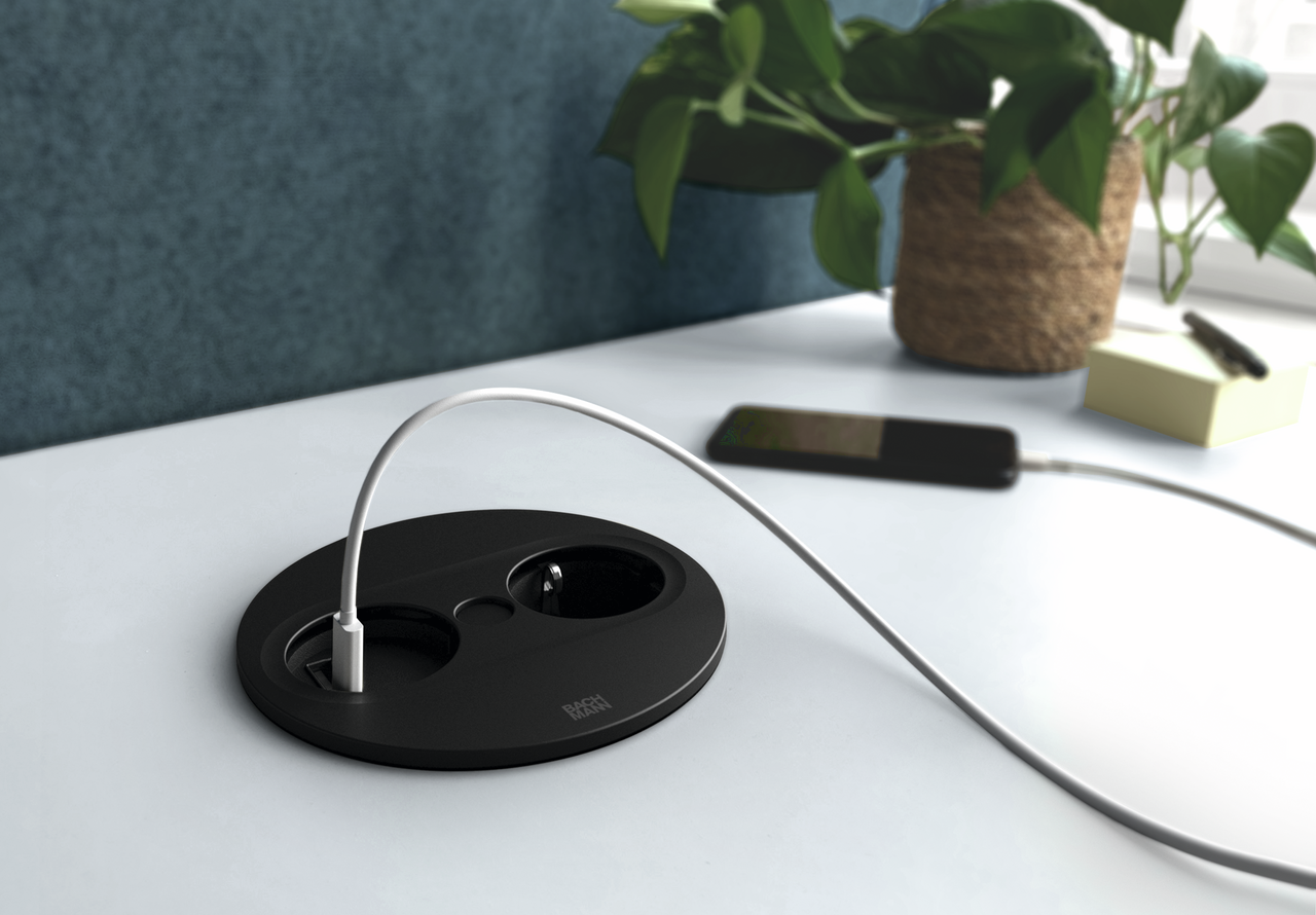 Twist 2 USB A+C, rund, mit Schukosteckdose, schwarz matt