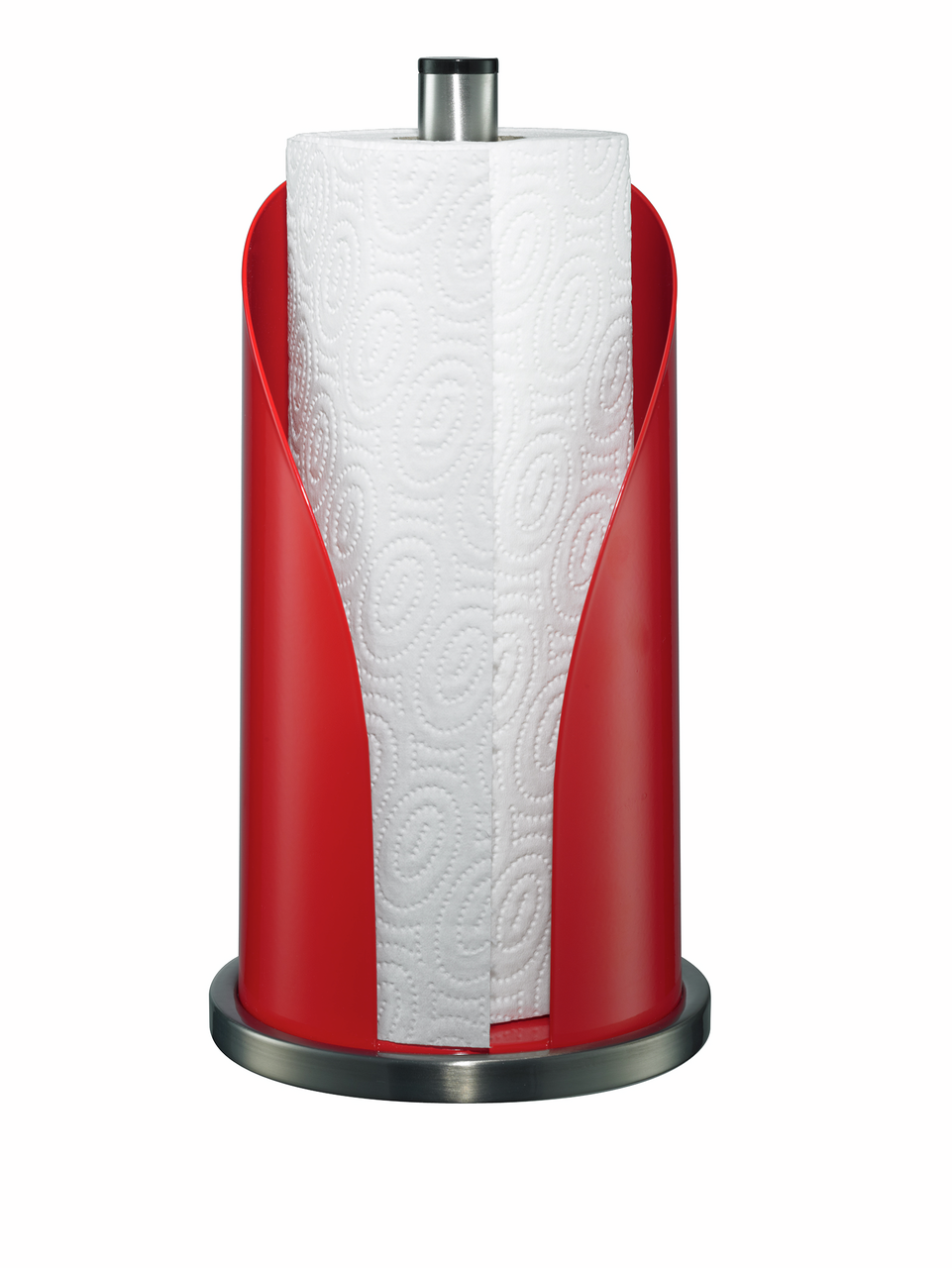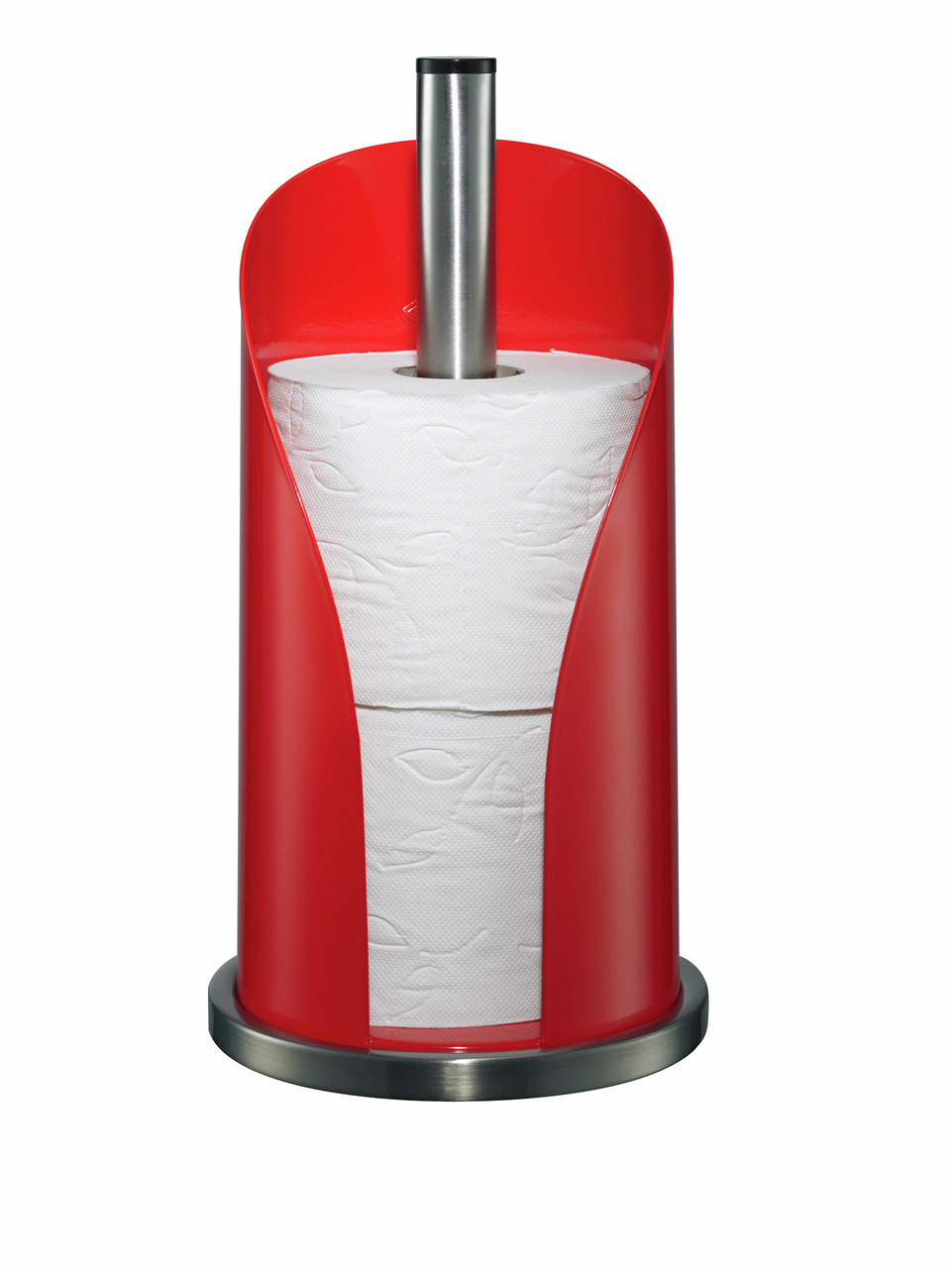 Hat Ihre Küchenpapierrolle noch keinen festen Standplatz in Ihrer Küche? Dann wird es höchste Zeit für diesen praktischen Rollenhalter im typischen Wesco-Materialmix aus Edelstahl und farbig lackiertem Stahlblech.