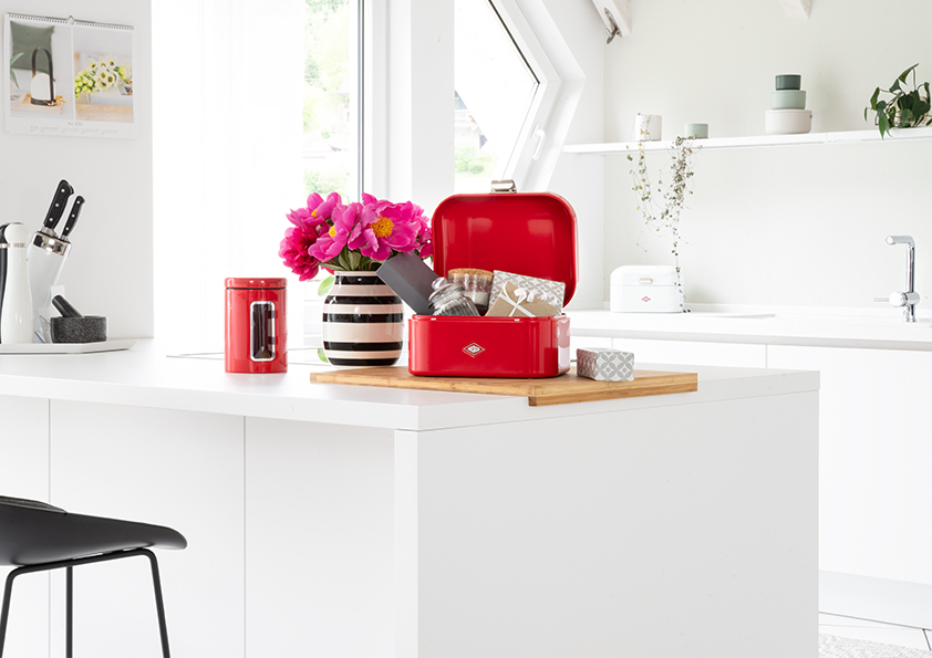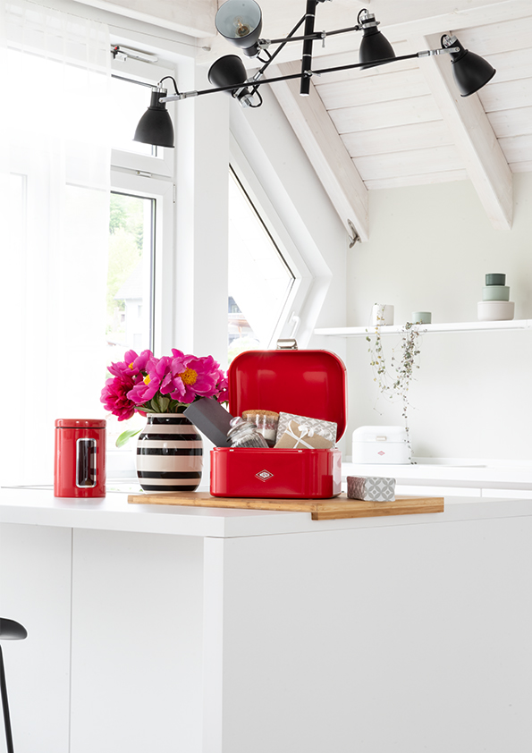 Gar kein Problem. Der Brotkasten Single Grandy® ist dank seiner Größe super für Küchen geeignet, in denen nicht viel Platz ist. In ihm kann ein kleineres Brot genauso gut hygienisch aufgehoben werden wie Brötchen, Gebäck oder Kuchen.Die Lüftungslöcher auf der Rückseite sorgen für eine optimale Luftzirkulation. So bleibt der Inhalt im Brotkasten länger frisch. Der Deckel ist mit stabilen Metallscharnieren am Unterteil befestigt.