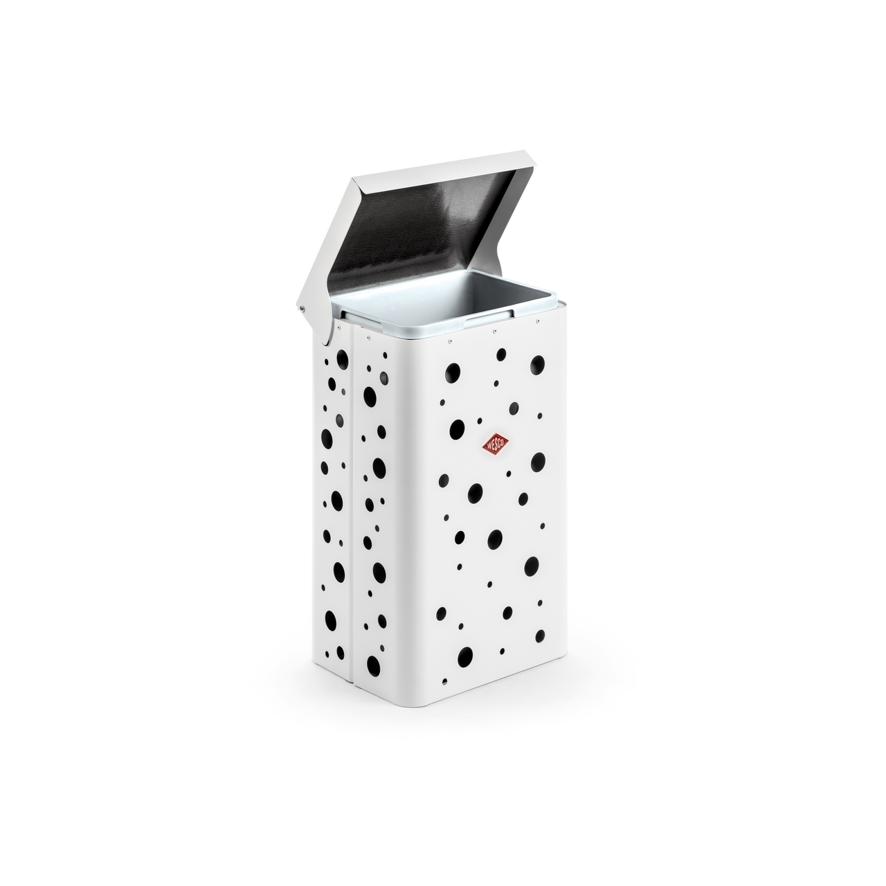 Typisch für WESCO-Produkte ist das fröhliche Erscheinungsbild funktionaler Alltags-Lösungen. Mit seinem Punkte-Design verbreitet der solide Metallbehälter der Wäschebox gute Laune. Der luftige Einsatz hat ein Volumen von 32 Litern. Die Duo-Varianten umfassen zwei Einsätze. Der Unterschied zwischen Duo 1 und Duo 2 liegt in den Abmessungen: In Variante 1 stoßen die breiten Seiten der Einsätze aneinander, in Variante 2 die schmalen Seiten. Mit dieser Flexibilität findet die großvolumige Lösung auch auf kleineren Grundrissen ihren Platz.