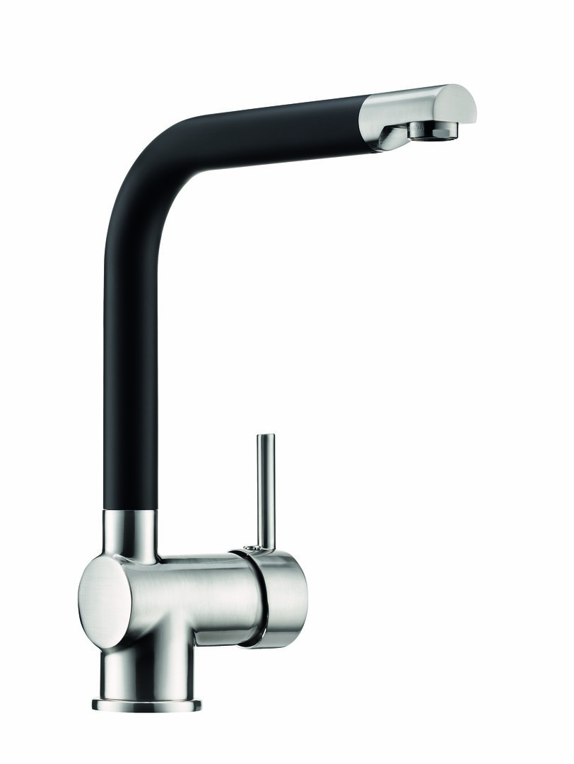 Einhebelmischer. Mit schwenkbarem Auslauf, schwarz, seitlichem Hebel und Keramikkartusche.