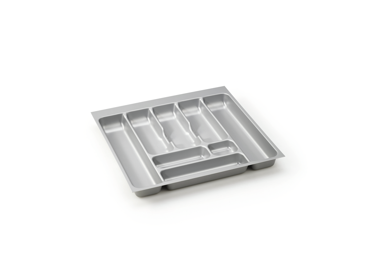 Der universelle Besteckeinsatz 5 schafft Ordnung in der Schublade. Er ist für diverse Küchen passend und zeichnet sich durch seine hochwertige Ausführung aus stabilem Kunststoff aus. Durch seine geringe Höhe von 50 mm lässt sich der Schubladeneinsatz auch in flache Auszüge integrieren. Dabei bietet er eine moderne Optik mit glänzender und pflegeleichter Oberfläche in Silbergrau. Die Besteckablage steht in unterschiedlichen Maßen zur Auswahl. Sie ist für Korpusbreiten von 30 bis 90 cm geeignet.