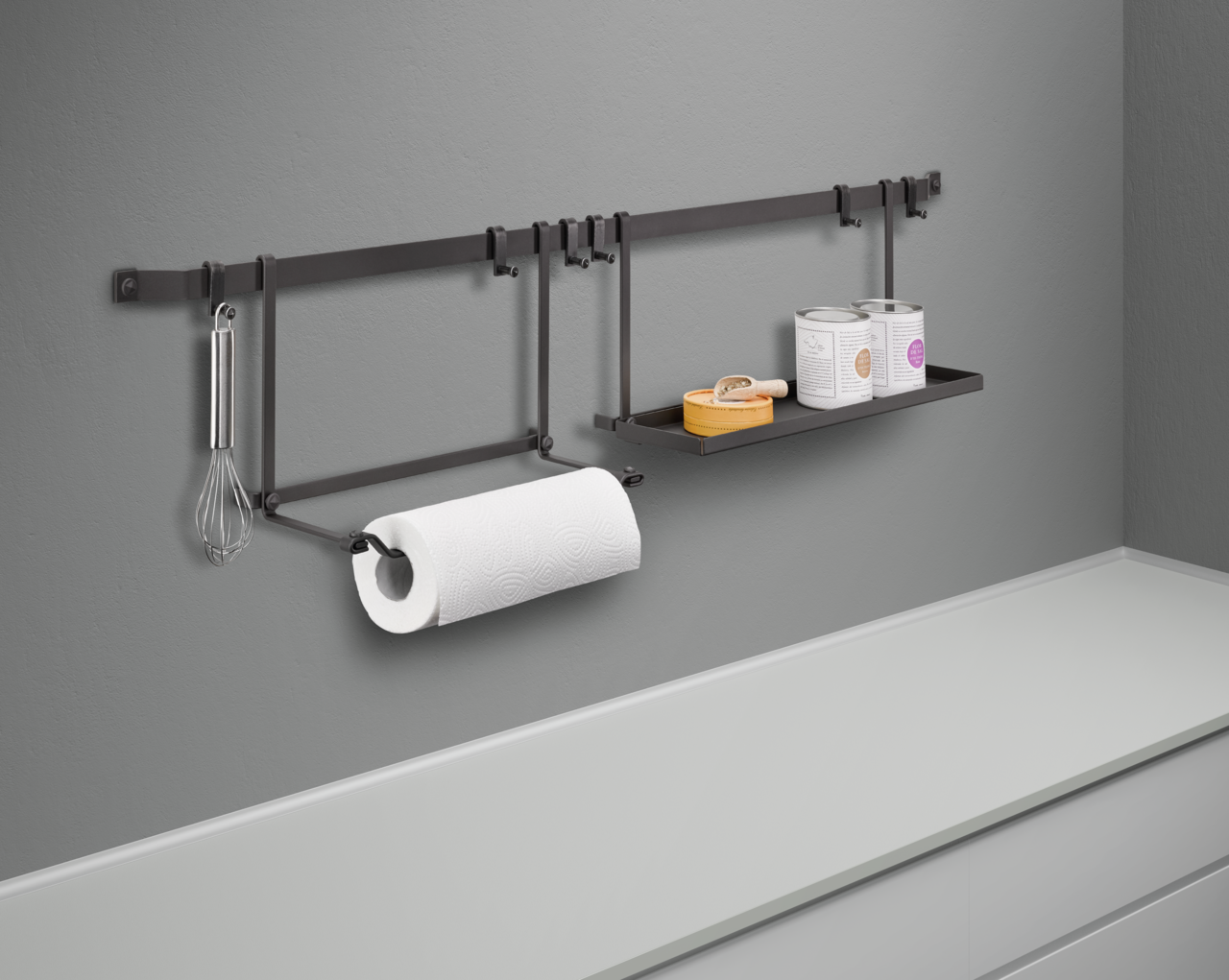 Der Cast Papierrollenhalter für die entsprechende Küchenreling bereichert die Kücheneinrichtung im modernen Industrial Look. Mit der praktischen Aufhängevorrichtung sind Haushaltstücher immer direkt griffbereit, ohne zusätzlichen Platz auf der Arbeitsfläche einzunehmen. Da sich der Rollenhalter einfach in das Relingsystem einhängen lässt, wird die Befestigung zum Kinderspiel. Gefertigt ist er in langlebiger und robuster Qualität mit pflegeleichter Oberfläche.