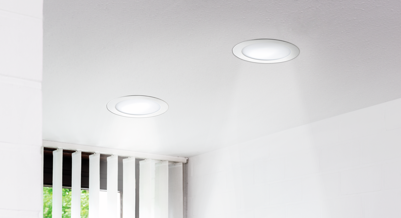 Mit Federklammern für den Einbau in Hohlraumdecken: