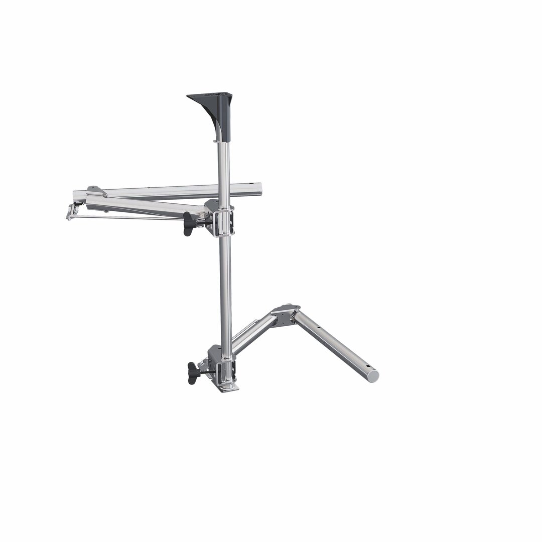 Mit dem STOREX® Cornerstone Swing Montageset lässt sich das Tablar-Set aus der Serie sicher in den Eckunterschrank der Küche einbauen. Der Eckschrank-Schwenkbeschlag dient zur Aufnahme und Bedienung der Regalebenen. Dadurch kann der Schrankinhalt bequem nach vorne geholt werden. Dank der geradeausfahrenden Schwenktechnik wird der Nachbarkorpus nicht versperrt. Das Set besteht aus einem teleskopierbaren Standrohr, zwei Schwenkarmen sowie Rohraufnahmen für die Befestigung im Schrank. Bei der Montage lassen sich die Schwenkarme beliebig in der Höhe verstellen, sodass die Tablare eine gute Erreichbarkeit bieten können. Geeignet ist das System gleichermaßen für eine rechts oder links ausschwenkende Installation. Es lässt sich in Schrankbreiten ab 900 mm nutzen und ist für eine Türbreite von 450 bis 600 mm optimiert. Der Swing-Schwenkbelag zeichnet sich durch seine stabile Ausführung und das langlebige Material aus. Die Montage erfolgt durch eine Schraubbefestigung der Rohraufnahmen auf dem Boden sowie unter dem Oberboden. Die Tablare sind separat erhältlich.