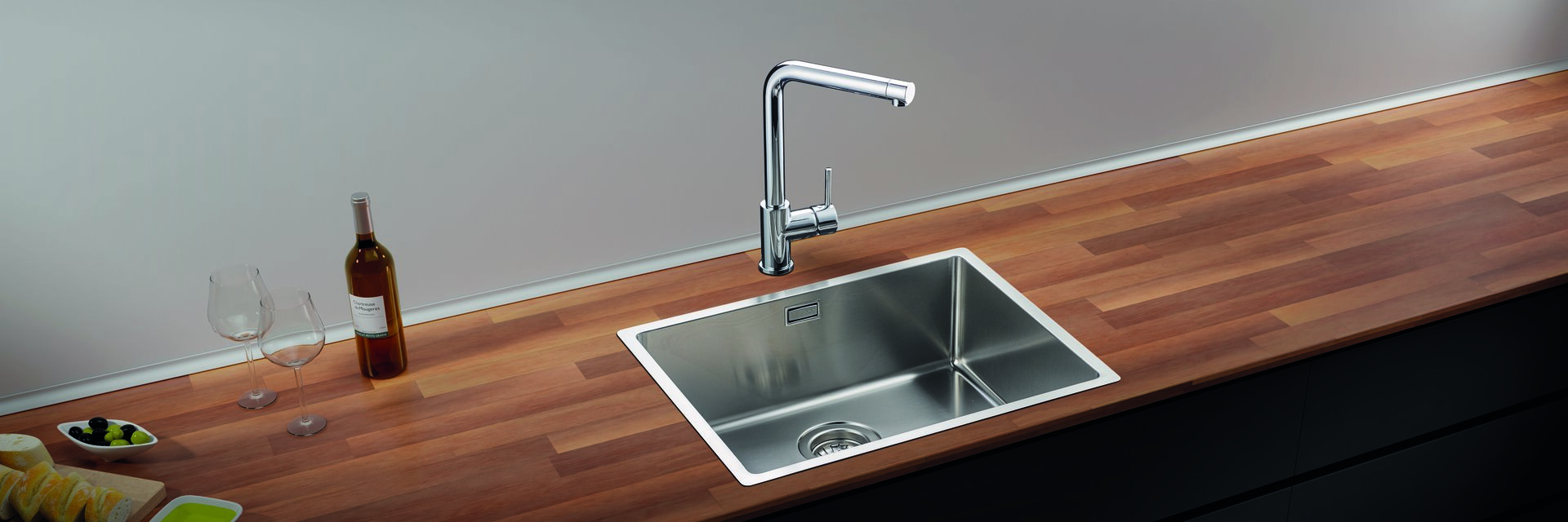 Die Spülen sind geeignet für Arbeitsplattenstärken von 10–40 mm (Einbauspüle) bzw. ab 20 mm (Unterbauspüle)
