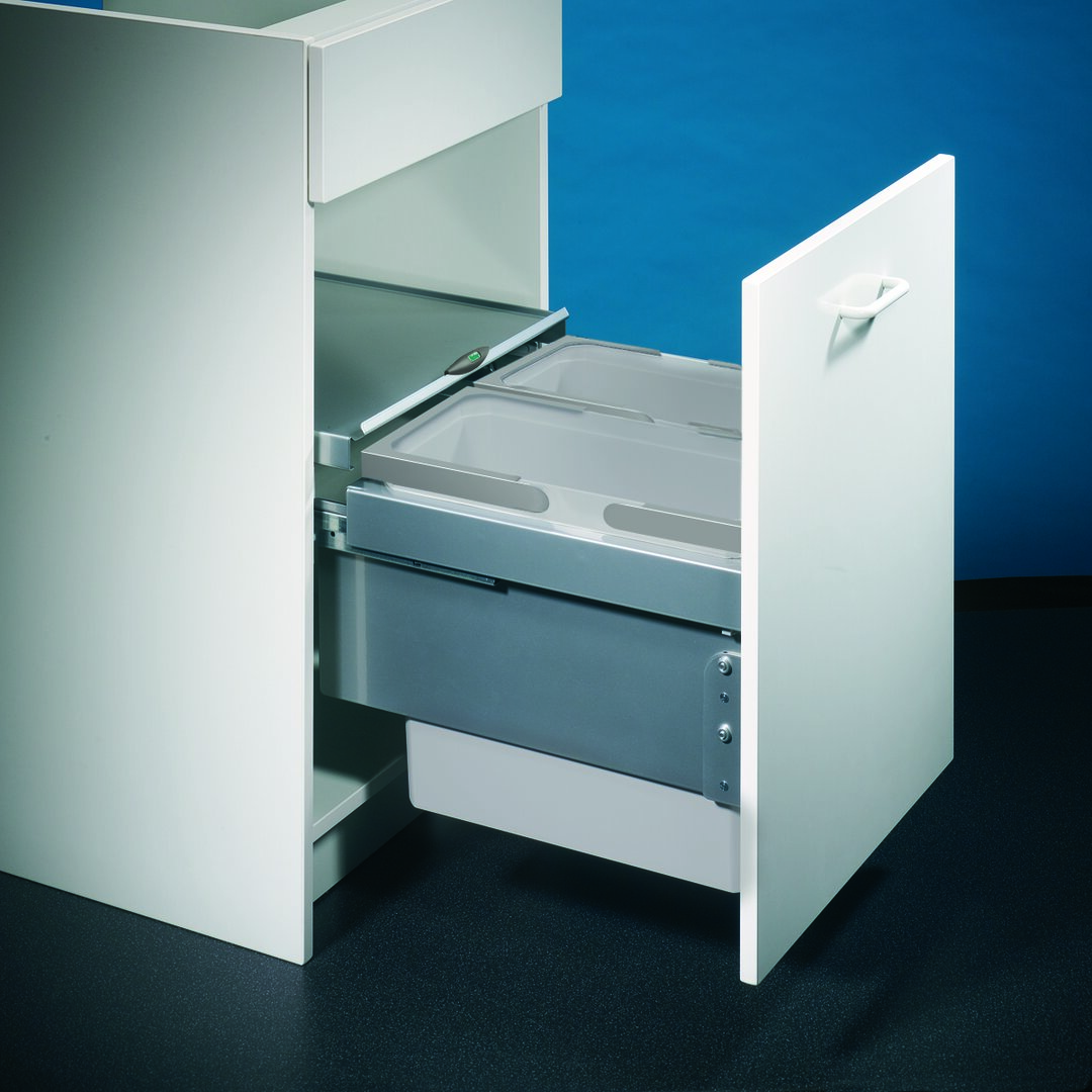 Das Mülltrennsystem Cox® Base 360 S/450-2 ist eine praktische Ergänzung für jede Küche und vereinfacht hier die Abfalltrennung. Da es für Auszugsfronten geeignet ist, lässt es den Müll auf elegante und komfortable Weise hinter der Küchenfront verschwinden. Zur Ausstattung gehören zwei Abfalleimer, die ein Fassungsvermögen von je 16 Litern haben und eine optimale Trennung von Rest- und Biomüll ermöglichen. Als besonderes Highlight besitzt der Mülleimer einen herausziehbaren Gesamtdeckel, der als zusätzliche Ablagefläche genutzt werden kann. Mit seiner Dämpfung und dem Softeinzug schließt sich der Einbaumülleimer sanft und selbstständig. Für eine zügige und leichte Montage an der Schrankwand ist er mit einem quick & easy Schnellmontagerahmen ausgestattet. Anschließend wird die Frontblende in den Auszugsrahmen einhängt und befestigt. Der Abfallsammler ist in verschiedenen Farbvarianten erhältlich.