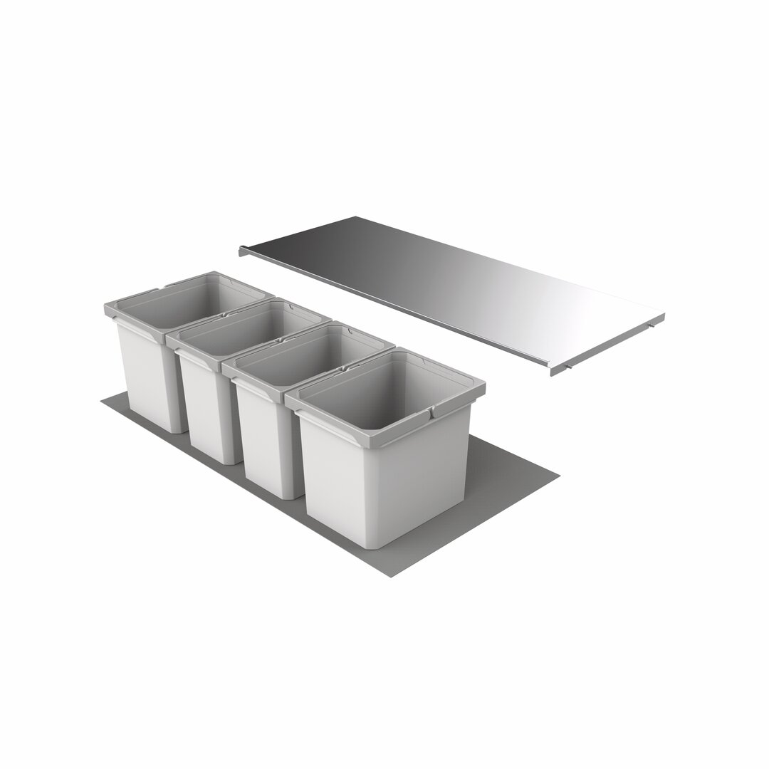 Das Mülltrennsystem Cox® Box 275 K/1000-4 eignet sich für den einfachen Einbau in vorhandene Auszüge und besticht durch eine niedrige Gesamthöhe. Insgesamt steht ein Abfallvolumen von 42 Litern zur Verfügung. Dabei haben die beiden größeren Abfallbehälter eine Größe von je 12 Litern und die beiden kleineren Einbaumülleimer ein Fassungsvermögen von je 9 Litern. Mit seinen vier Innenbehältern ermöglicht das Mülltrennungssystem eine komfortable und umweltbewusste Trennung verschiedener Wertstoffe und Abfälle im Haushalt. Um Gerüche einzuschließen, ist der Abfallsammler mit einem feststehenden Gesamtdeckel aus Metall ausgestattet. Der Deckel lässt sich hinter der oberen Front platzsparend montieren. Durch die beidseitig beschichtete Antirutscheinlegematte kann der Abfallsammler ohne Verrutschen in den vorhandenen Auszug eingebaut werden.