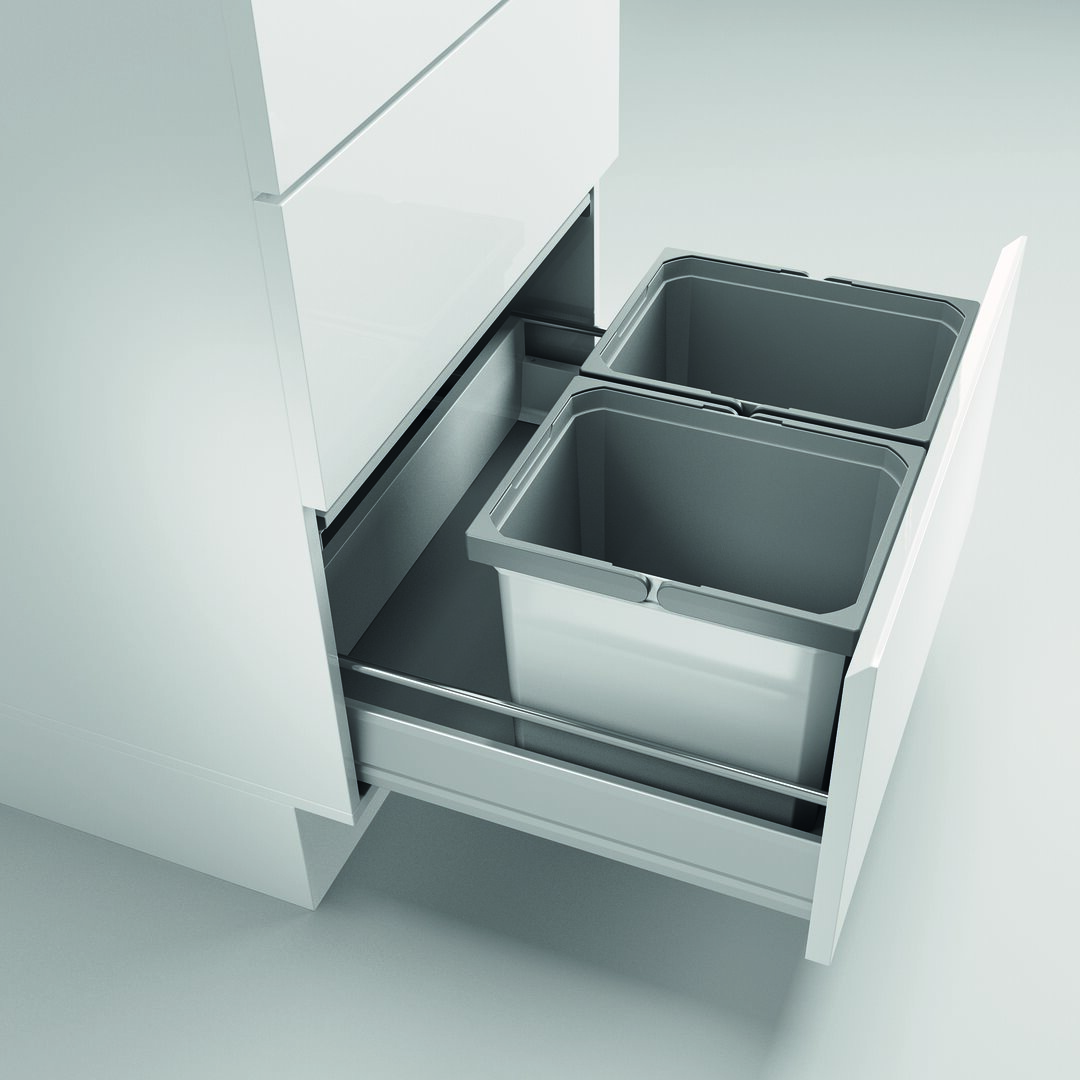 Das Mülltrennsystem Cox® Box 275 K/600-2 ist eine flexible Lösung für jede Küche und lässt sich für Schränke mit vorhandenen Auszügen nutzen. Zur Verfügung stehen zwei Abfallbehälter mit einem Fassungsvermögen von je 12 Litern, die eine leichte Mülltrennung ermöglichen. Optional lässt sich der Abfalleimer mit einem Biodeckel bestellen, sodass er auch für die Entsorgung von organischen Abfällen eingesetzt werden kann. Zum Verschließen dient ein feststehender Gesamtdeckel aus Metall, der sich platzsparend hinter der oberen Front befestigen lässt. Da der Einbau-Abfallsammler in den Auszug gestellt wird, gestaltet sich die Montage besonders einfach. Die beidseitig beschichtete Antirutschmatte gewährt einen festen Stand und verhindert ein Verrutschen der Abfallsammler.