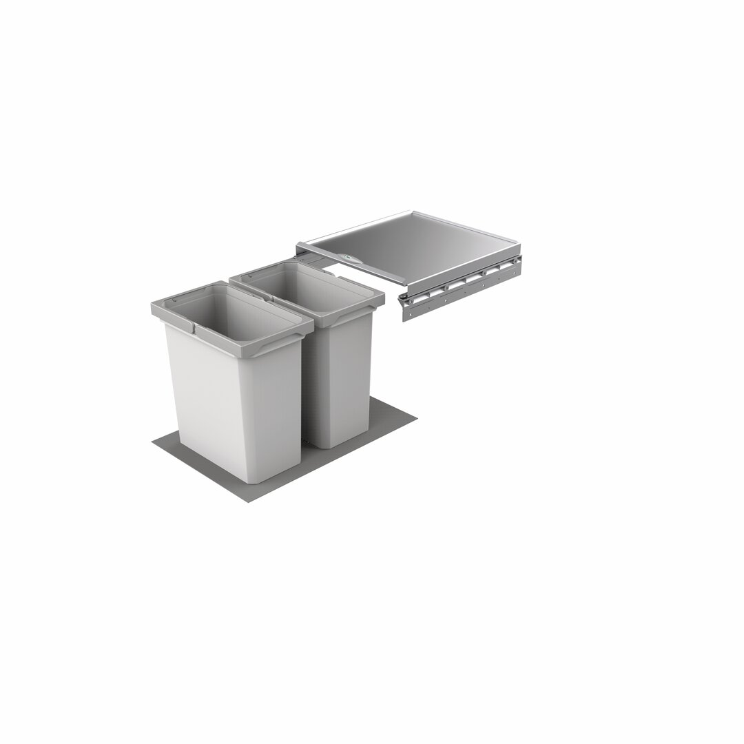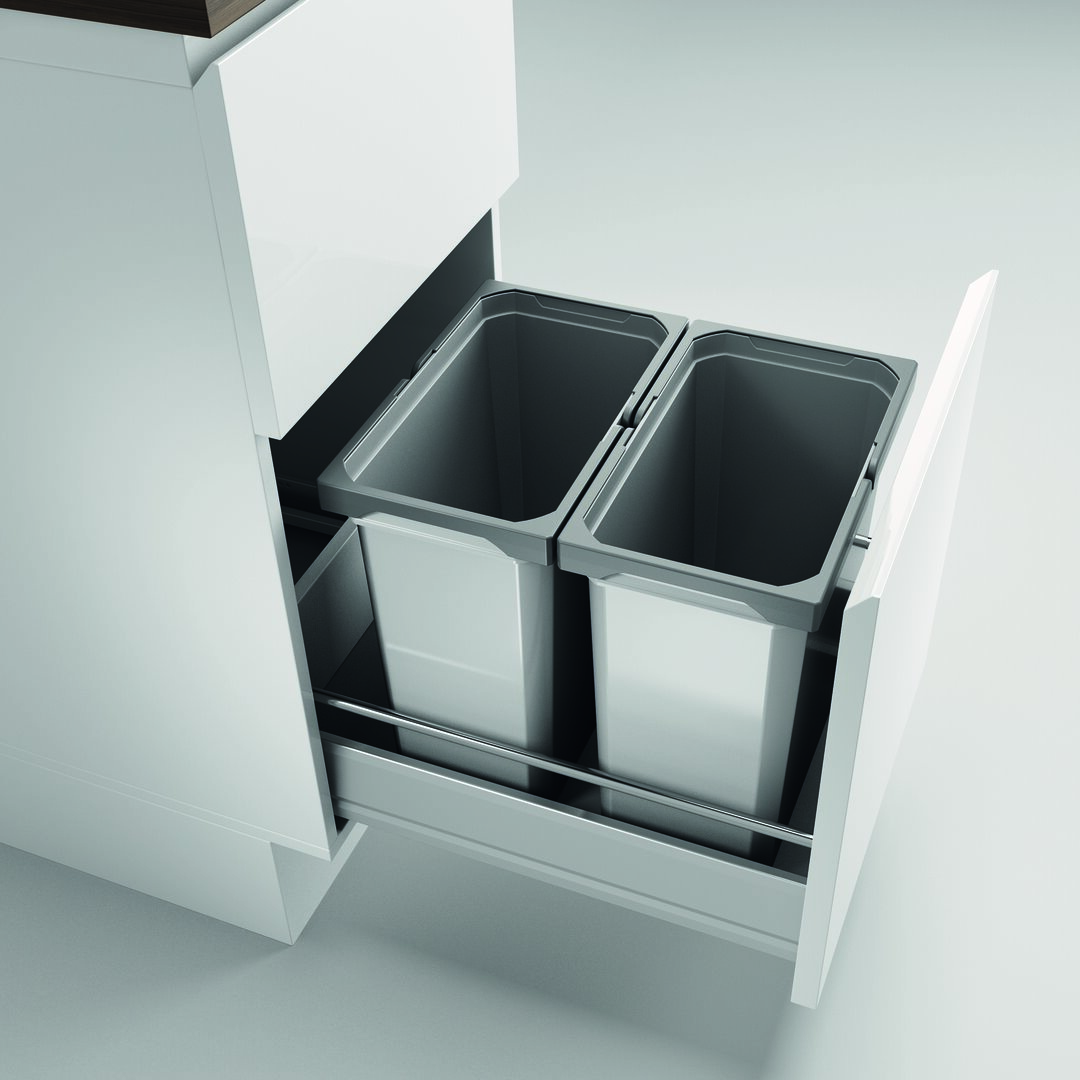 Das Mülltrennsystem Cox® Box 360 S/400-2 ist eine kluge Raumlösung für Küchenschränke mit vorhandener Auszugstechnik. Es überzeugt mit einem hohen Maß an Flexibilität und eignet sich für alle gängigen Schubladen. Die Ausstattung umfasst zwei Abfallbehälter mit einem Fassungsvermögen von je 12 Litern, die eine leichte Trennung von Abfällen möglich machen. Komplettiert wird der Einbau-Abfallsammler durch einen herausziehbaren Gesamtdeckel, der sich hinter der oberen Front platzsparend befestigen lässt. Um organische Abfälle zu entsorgen, kann der Abfallsammler optional mit einem Gerüche einschließenden Biodeckel bestellt werden. Für den Einbau wird das Mülltrennungssystem gemeinsam mit der beidseitig beschichteten und zuschneidbaren Antirutschmatte in den Auszug gestellt.