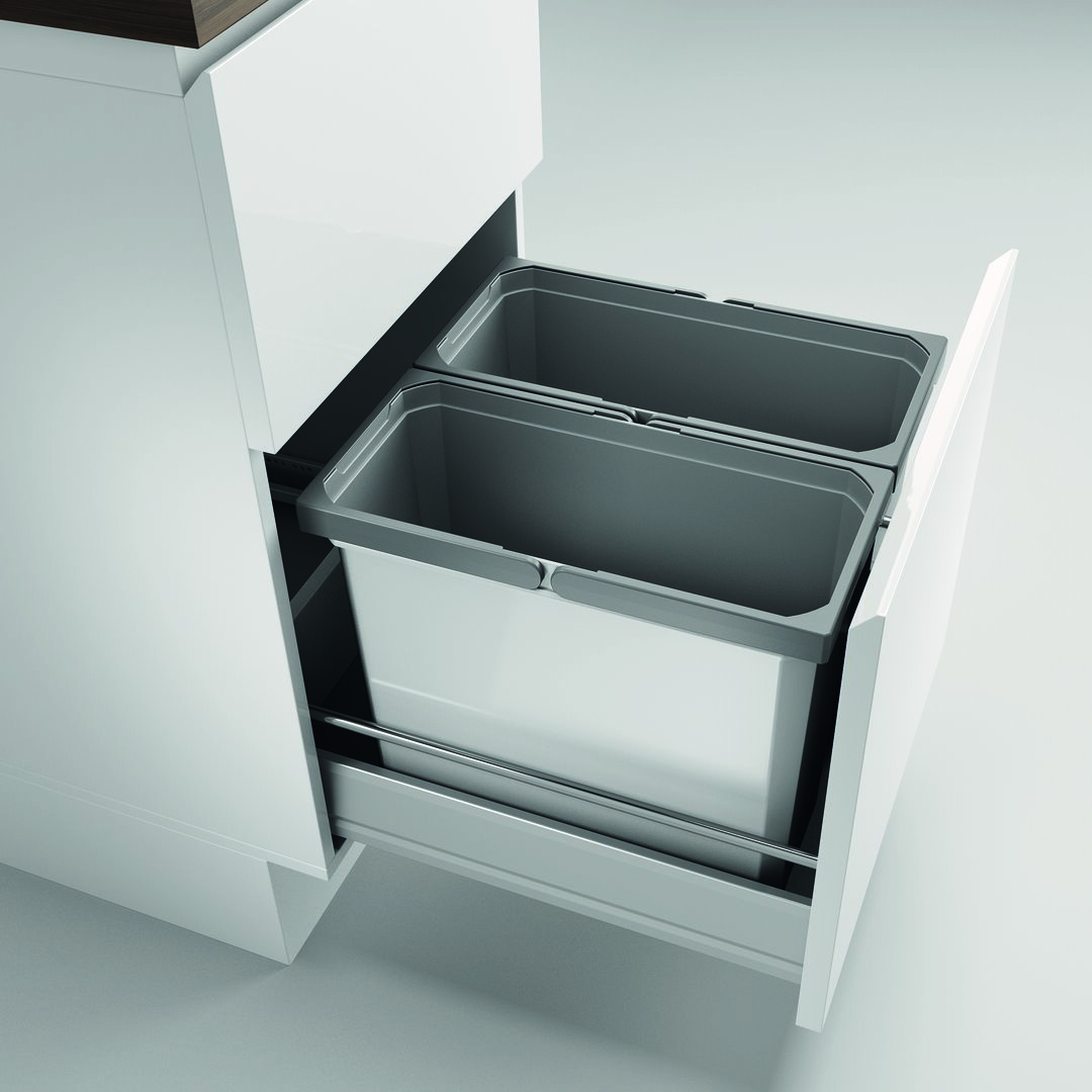 Das Mülltrennsystem Cox® Box 360 S/450-2 erweist sich durch diverse Eigenschaften als echte Bereicherung für den Küchenalltag und ist für vorhandene Auszüge konzipiert. Um Wertstoffe zu sammeln und gezielt zu trennen, verfügt es über zwei Abfallbehälter mit einem Volumen von je 16 Litern. Der herausziehbare Gesamtdeckel aus Metall verschließt die Innenbehälter und schützt die Küche vor unangenehmen Gerüchen. Er lässt sich bei Bedarf auch als zusätzliche Ablagefläche für verschiedene Utensilien verwenden. Alternativ kann der Abfallsammler platzsparend hinter der oberen Front abgebracht werden. Für die Montage in Auszüge ist das Mülltrennungssystem mit einer beidseitig beschichteten Antirutschmatte ausgestattet, die einen sicheren Stand ohne Verrutschen ermöglicht.