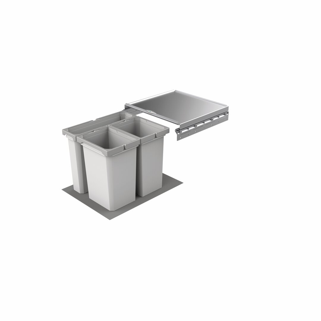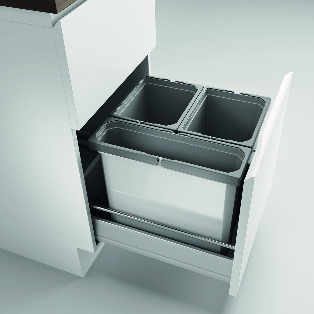 Das Mülltrennsystem Cox® Box 360 S/450-3 ermöglicht eine einfache Trennung von Abfällen in der Küche. Es ist für den Einsatz in vorhandenen Auszügen vorgesehen und eignet sich für alle gängigen Schubladen. Zum Mülltrennungssystem gehören zwei Abfalleimer mit einem Volumen von 10 Litern und ein Müllbehälter, der 8,5 Liter fasst. Ein herausziehbarer Gesamtdeckel aus Metall verschließt die Innenbehälter und dient gleichzeitig als praktische Ablagefläche für verschiedene Utensilien. Optional steht ein Biodeckel zur Auswahl, sodass der Einbaumülleimer auch zur Entsorgung von organischen Abfällen genutzt werden kann. Damit der Einbau-Abfallsammler im Auszug nicht verrutscht, ist er mit einer beidseitig beschichteten Antirutschmatte ausgestattet.