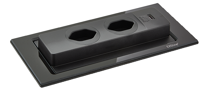 Evoline® BackFlip USB C, mit schweizer Steckdosen, flächenbündig H 5 mm, Glas schwarz