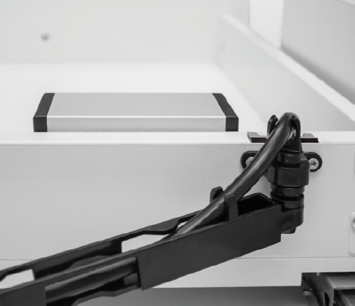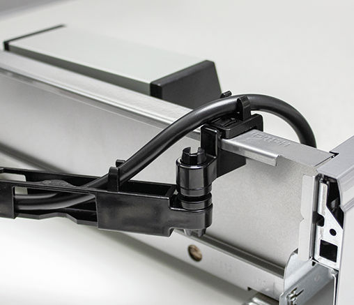 Die nachrüstbare CON-AKTIV® Kabelführung Evoline® Wing sorgt dafür, dass Stromkabel in der Schublade sicher verlegt werden können und dennoch beweglich bleiben. So lassen sich Steckdosen oder Ladestationen integrieren, ohne dass Kabel geknickt oder eingeklemmt werden. Der bewegliche Arm ist mit einem Gelenk ausgestattet und besitzt u-förmige Taschen und Clips zur Aufnahme der Netzleitung. Das Kabelmanagement ist passend für Schubkästen ab einer Breite von 400 mm und 590 mm Auszugslänge. Es lässt sich mit den Evoline® Einbau-Steckdosen kombinieren, die separat erhältlich sind. Die Kabelordnung punktet durch ihren stabilen Aufbau und die langlebige Qualität. Zum Lieferumfang gehören Befestigungselemente für Möbelteile aus Holz oder Metall.