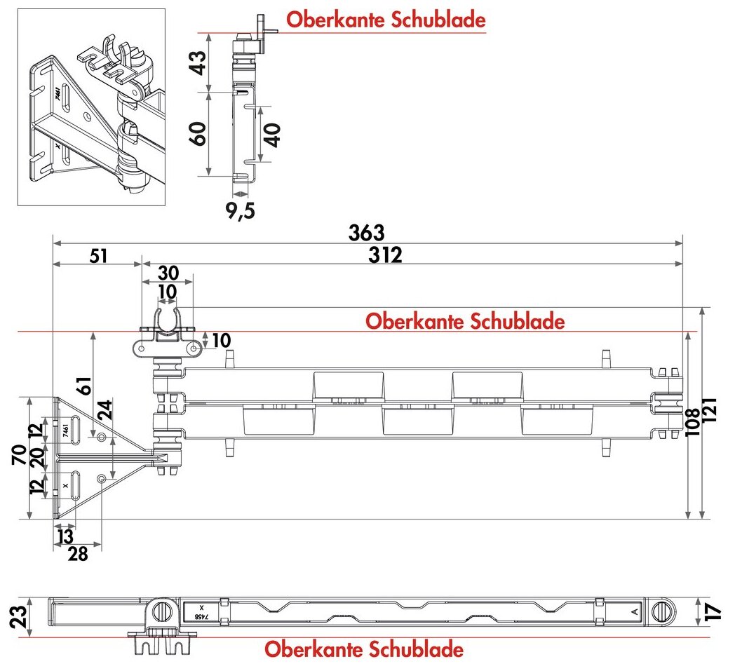 — Passend für Schubkästen ab 400 mm Breite und bis zu einer Auszugslänge von 590 mm.