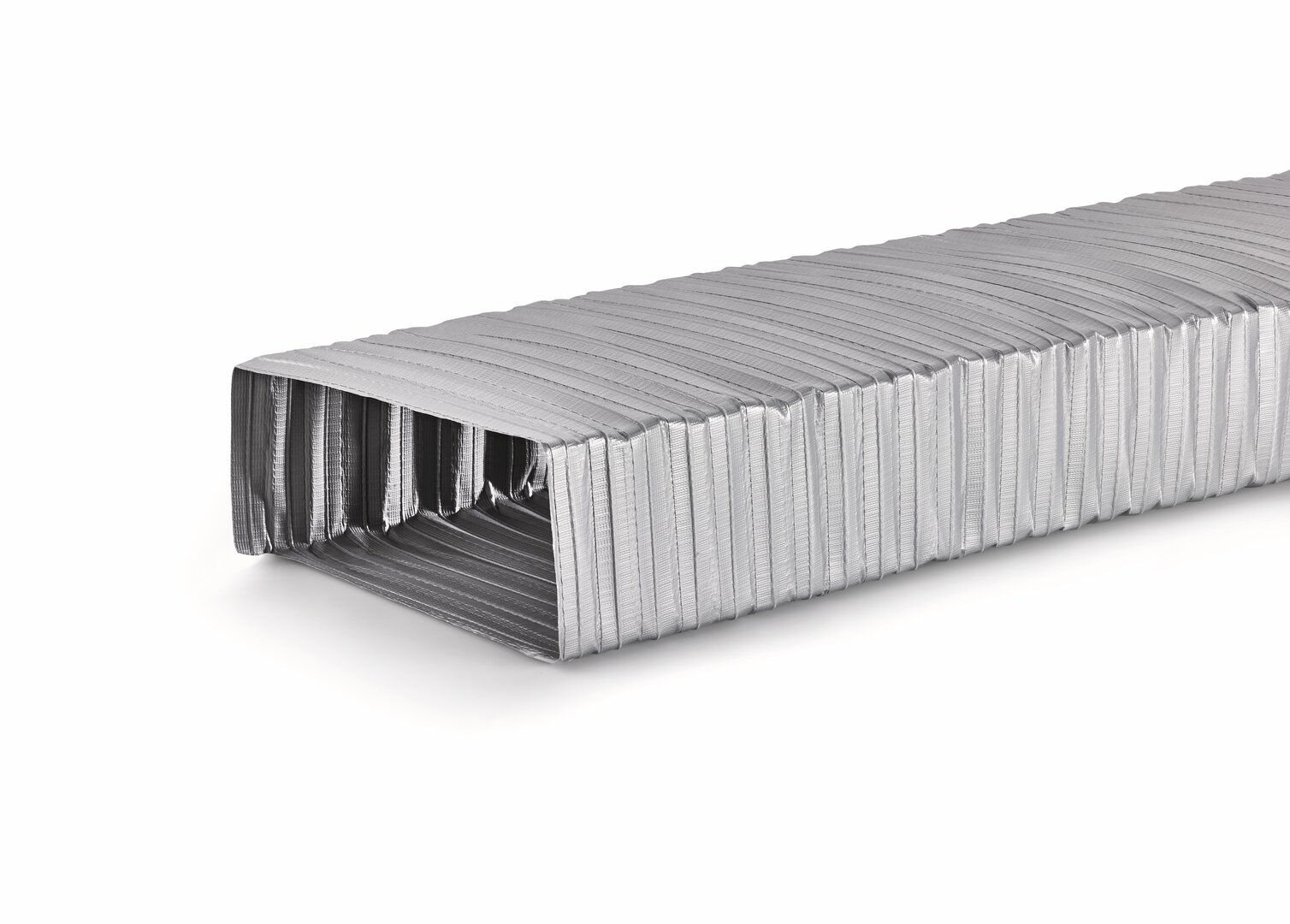 Der COMPAIR® GREENflow Flexkanal ermöglicht eine flexible Verlegung des Dunstabzugskanals in der Küche. Er kann insbesondere bei Downdraft- oder Muldensystemen zum Einsatz kommen und zeichnet sich durch seine Strömungsoptimierung aus. Entwickelt ist der silberne Flachkanal für den Anschluss an eine GREENflow Filterbox im Umluftbetrieb. Sein Material ist schwer entflammbar nach B1. Basis ist ein Drahtkern, der über rückfedernde Eigenschaften verfügt und sanfte Biegeradien ermöglicht. Das flache Lüftungsrohr stellt einen Anschlussquerschnitt mit den Maßen 227 x 94 mm zur Verfügung. In der Auswahl sind unterschiedliche Längen.