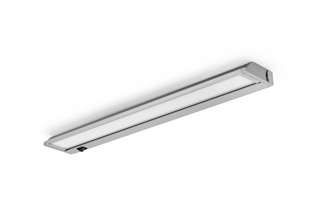 Die Unterbauleuchte Giro-S LED mit Schalter sorgt für eine effiziente Ausleuchtung des Arbeitsbereichs innerhalb der Küchenzeile. Optisch überzeugt sie durch ein geradliniges Design, das ideal zu einem modernen Küchenkonzept passt. Als besonders praktisch erweist sich die um 150° schwenkbare LED-Einheit, um für perfekte Lichtverhältnisse bei allen anfallenden Küchenarbeiten zu sorgen. Dank der Acrylabdeckung entsteht eine gleichmäßige Ausleuchtung ohne sichtbare LED-Punkte. Die Lichtfarbe entspricht mit 4000 K einem neutralweißen Ton bei einer Helligkeit von 75 Lumen pro Watt. Je nach Bedarf steht die Unterbodenleuchte für Hängeschränke in unterschiedlichen Längen zur Verfügung. Sie ist bis zu maximal 10 Leuchten erweiterbar, um einen größeren Bereich auf der Arbeitsplatte auszuleuchten. Das Gesamtpaket umfasst eine Zuleitung für den Netzanschluss sowie eine lose beigelegte Verbindungsleitung. Der Kabelauslass befindet sich auf der linken Seite der LED-Leuchte.