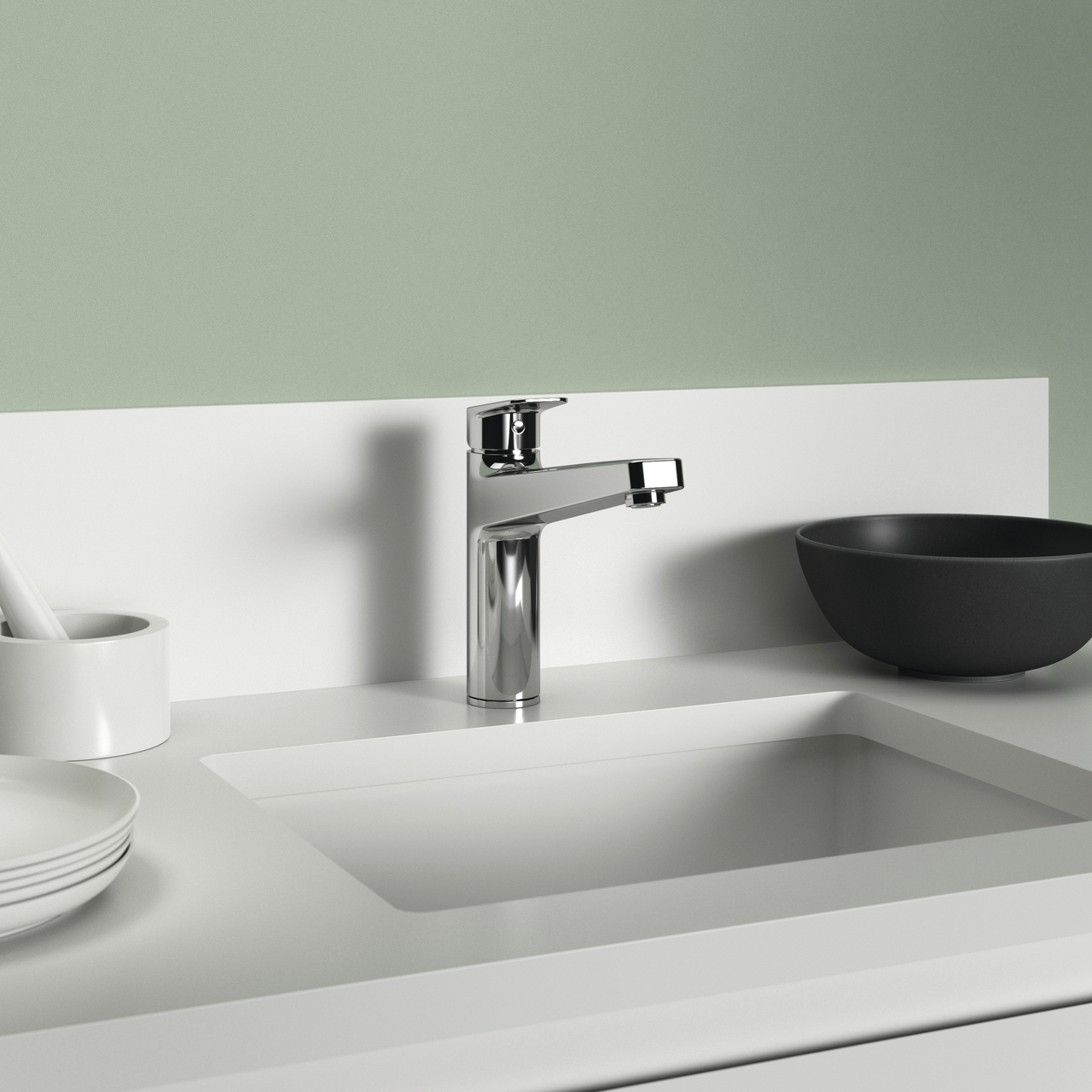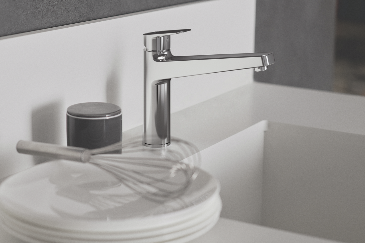 Einhebelmischer. Mit schwenkbarem Gussauslauf, Keramikkartusche und ECO-Funktion.
