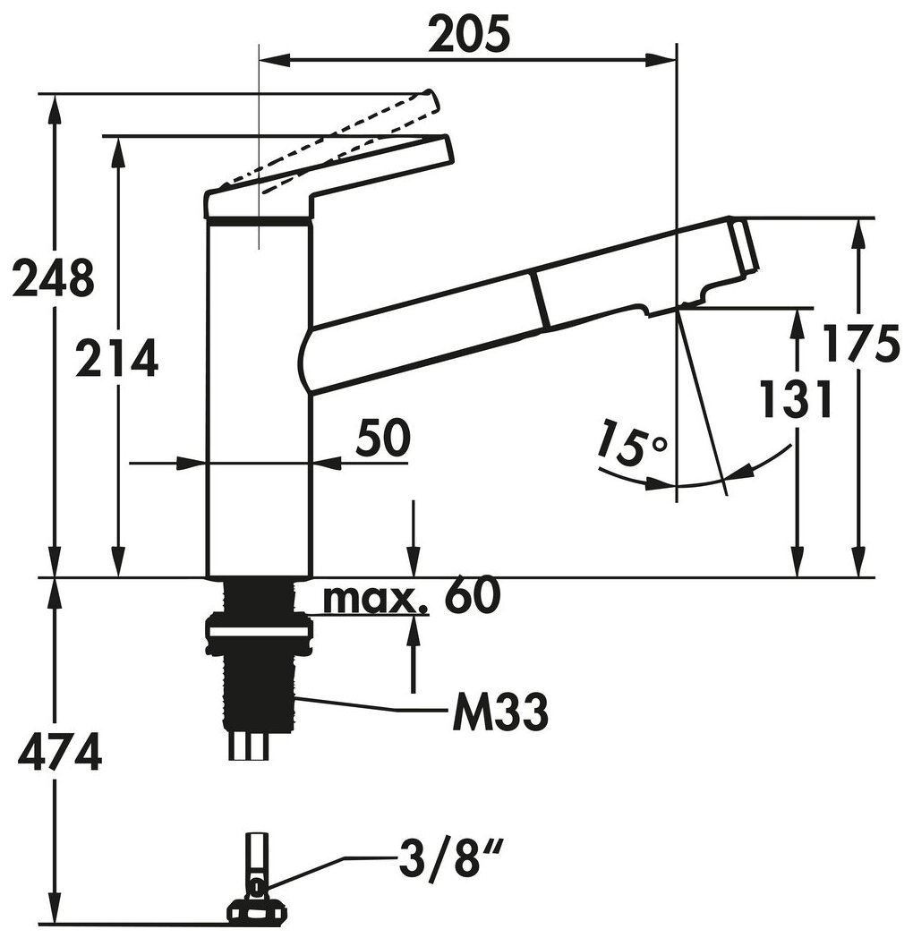 — Auszugbrause bis 500 mm ausziehbar,