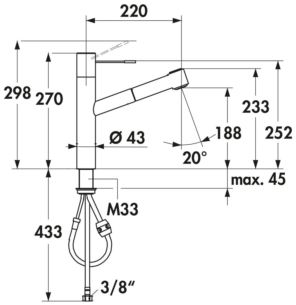 Einhebelmischer. Mit schwenk-/herausziehbarer Schlauchbrause (Strahl/Brause umstellbar) und Keramikkartusche.