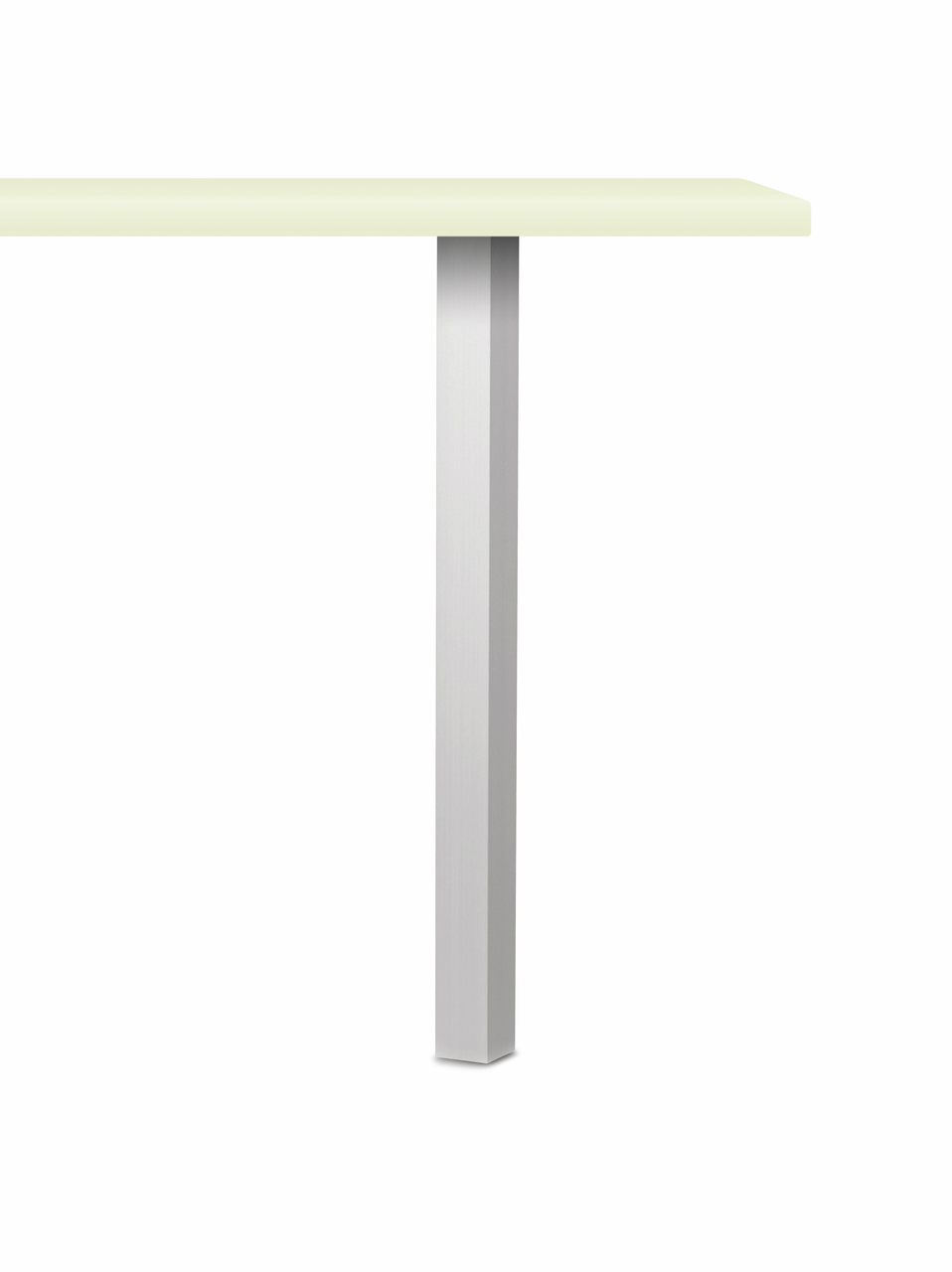 Stützfuß. Solides quadratisches Aluminiumprofil. Geeignet für Ansatztische, aber nicht für freistehende Tische, nicht kürzbar.
