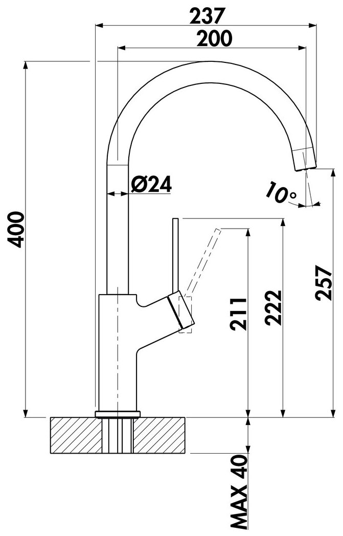 Einhebelmischer. Mit schwenkbarem Auslauf, seitlichem Hebel, Laminarstrahlregler und Keramikkartusche.