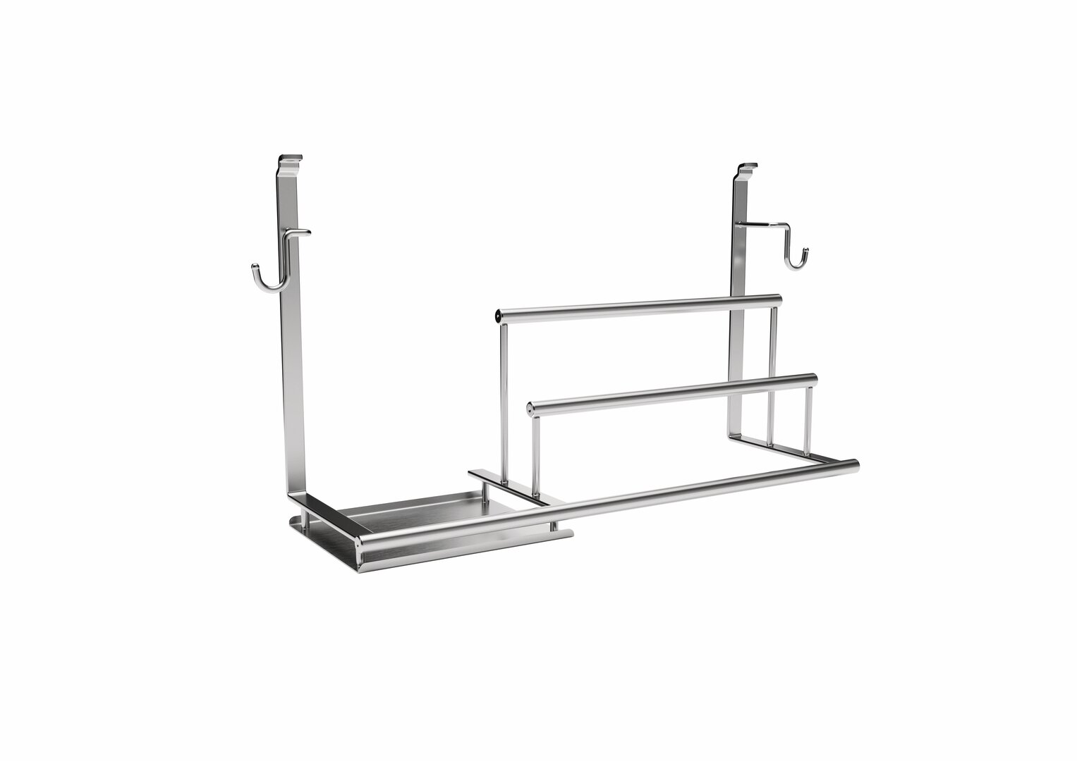 Mit dem Linero Style Spülutensilienhalter sind Spülmittel, Schwämme und Spültuch beim Abwasch direkt griffbereit. Er dient als Ergänzung für das Relingsystem und bietet eine nützliche Ablage sowie Haken für Spülutensilien. Durch das Material aus Aluminium punktet das Zubehör mit einer langlebigen und robusten Qualität. Sein zeitloses und edles Design harmoniert mit vielen Küchenstilen. Der Spülutensilienhalter wird von unten in die Küchenreling verschraubt.
