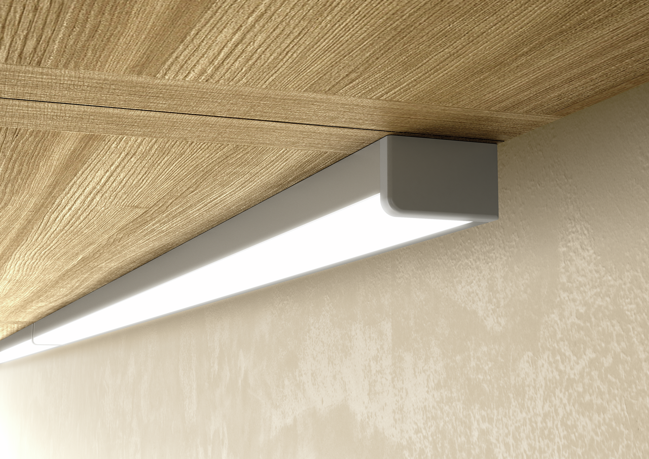 Unterbodenleuchte. Schmales Aluminiumprofil mit blendfreier Abdeckung.