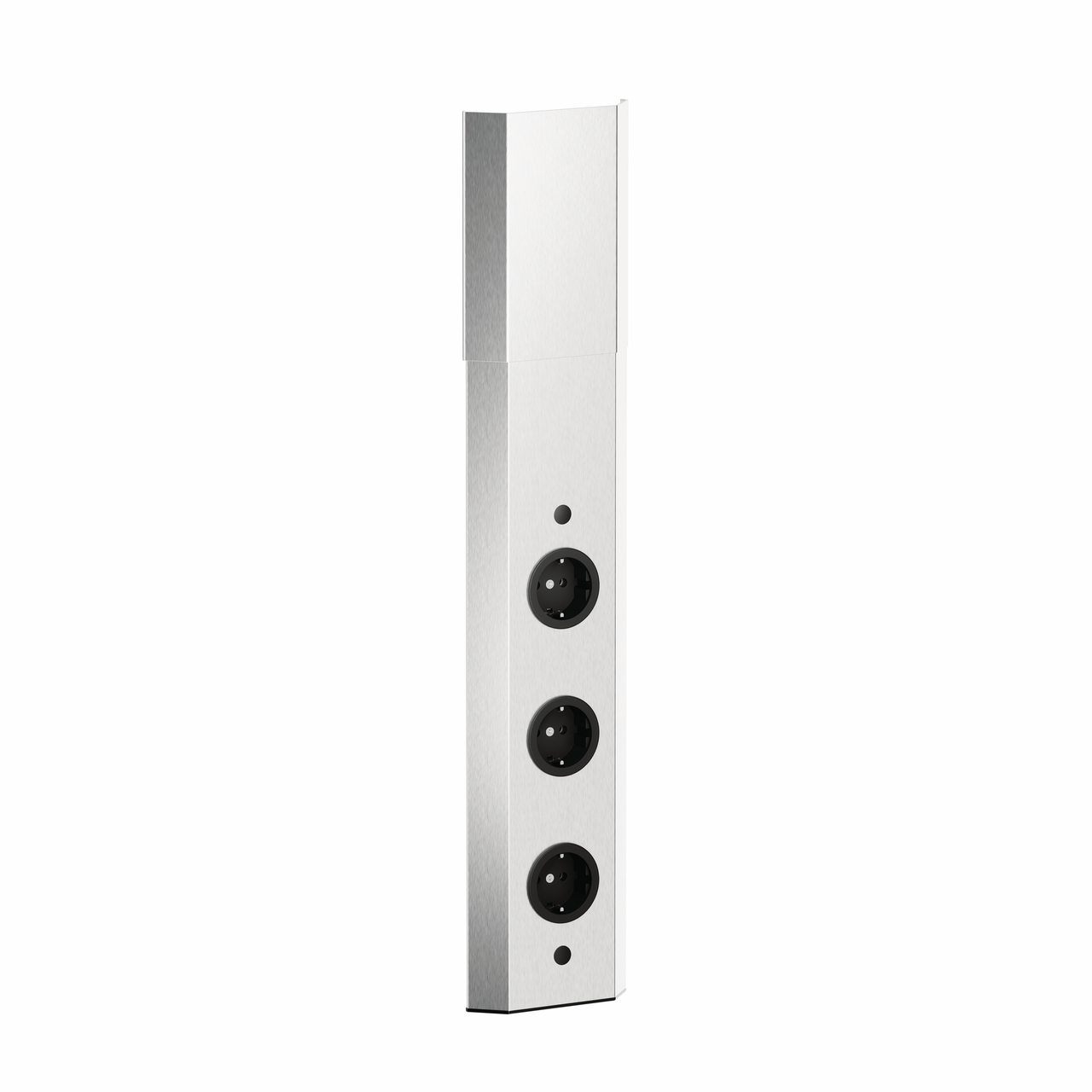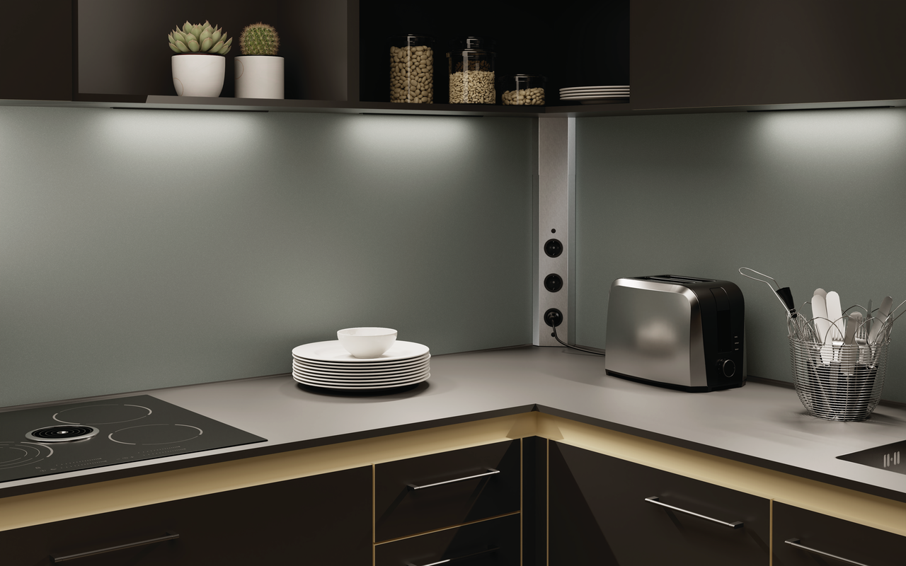 Die CON-AKTIV® Ecksteckdose Mira Eck fügt sich mit ihrer dreieckigen und platzsparenden Ausführung in jede Ecke der Küchenarbeitsfläche oder unter Wandschränken ein. Optisch überzeugt sie durch ein zeitloses und edles Design, das mit sämtlichen Kücheneinrichtungen harmoniert. Das Steckdosenelement verfügt über ein teleskopierbares Ausgleichsstück ohne Endkappen, wodurch es individuell an die Höhe der Arbeitsplatte angepasst werden kann. Wahlweise kann es mit zwei oder drei Steckdosen bestellt werden, die die Stromversorgung von Küchengeräten wie Kaffeemaschine oder Mixer ermöglichen. Die Doppelsteckdose lässt sich schnell und leicht in eine Ecke mit einem Winkel von 90° montieren. Mit ihrem hochwertigen Gehäuse aus Edelstahl zeichnet sie sich durch eine robuste und langlebige Qualität aus. Damit das Kabel unauffällig von hinten angeschlossen werden kann, ist der Kabelauslass an der hinteren Seite angebracht. Für eine externe Beleuchtung lässt sich die 2-fach-Steckdose optional mit einem Schalter bestellen.
