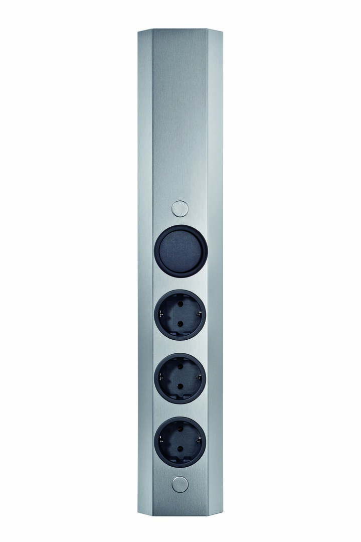 Die CON-AKTIV® Ecksteckdose Mira Eck small S überzeugt mit elegantem Design und kompakter Bauweise. Mit ihrer schlanken Form lässt sie sich platzsparend in die Küchenecke auf der Arbeitsplatte oder unterhalb des Wandschrankes integrieren. Die zeitlose Edelstahloptik fügt sich harmonisch in die vorhandene Kücheneinrichtung ein. Damit die 3-fach-Steckdose optimal an die Höhe zwischen Arbeitsplatte und Oberschrank angepasst werden kann, verfügt sie über ein teleskopierbares Ausgleichsstück. Zur Stromversorgung von Toaster, Wasserkocher und anderen Küchengeräten dienen drei Steckdosen, die untereinander platziert sind. Für eine externe Beleuchtung ist das Steckdosenelement mit einem zusätzlichen Schalter ausgestattet. Die Montage in der Ecke der Küche erfolgt unkompliziert und schnell. Gefertigt ist die Mehrfachsteckdose in langlebiger und robuster Qualität. Durch den Kabelauslass von hinten lässt sich das Kabel flach an der Wand anliegend anschließen. Im Lieferumfang ist passender ein Schuko-Stecker lose beilegt. Das Eck-Steckdosenelement steht in unterschiedlichen Farben zur Auswahl und kann passend zum Einrichtungsstil bestellt werden.