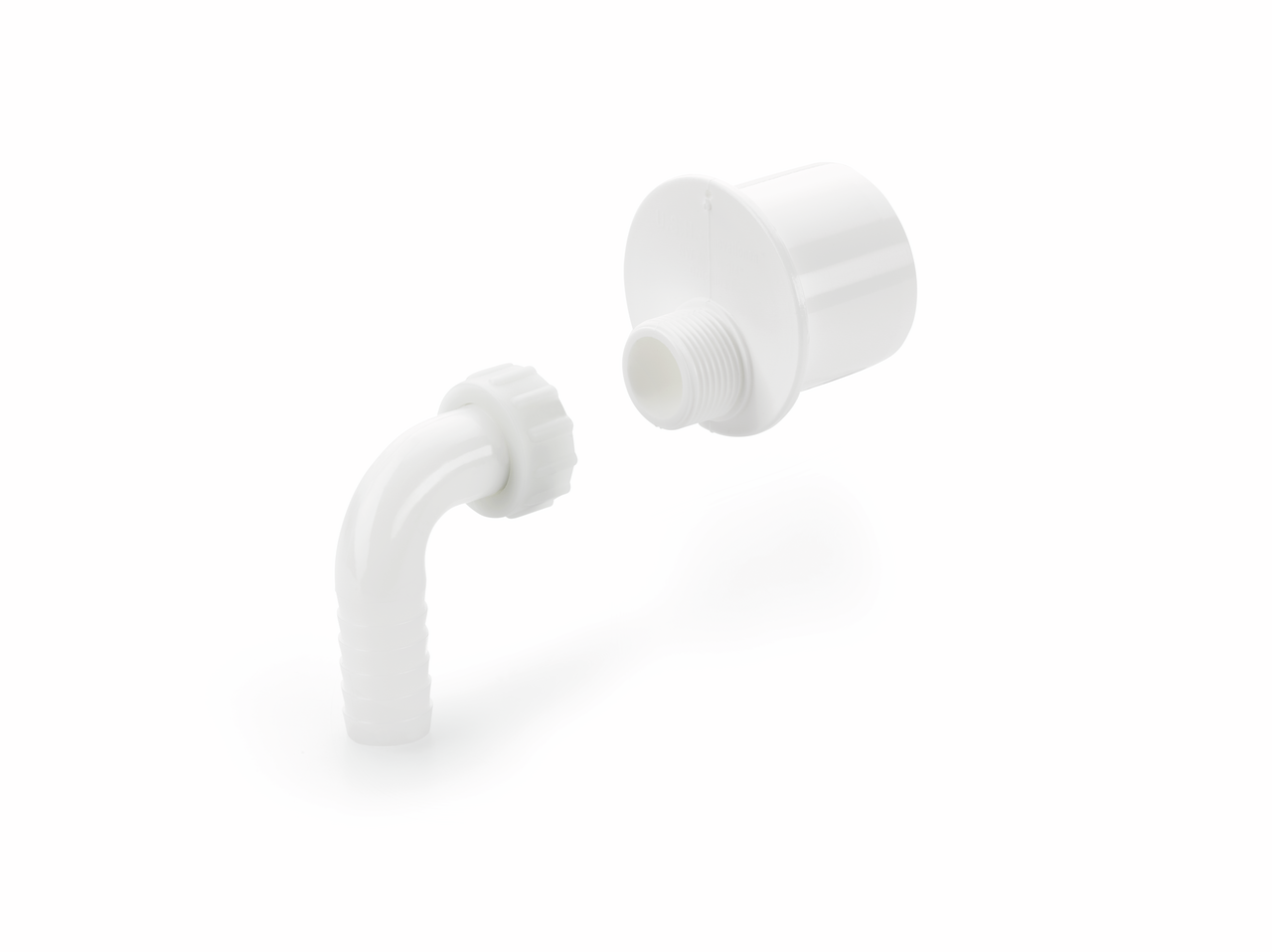 Schlauchtülle mit ¾" Überwurfmutter, dauerhafte und dichte Verbindung, kein Herausrutschen des Ablaufschlauches, universell einsetzbar
