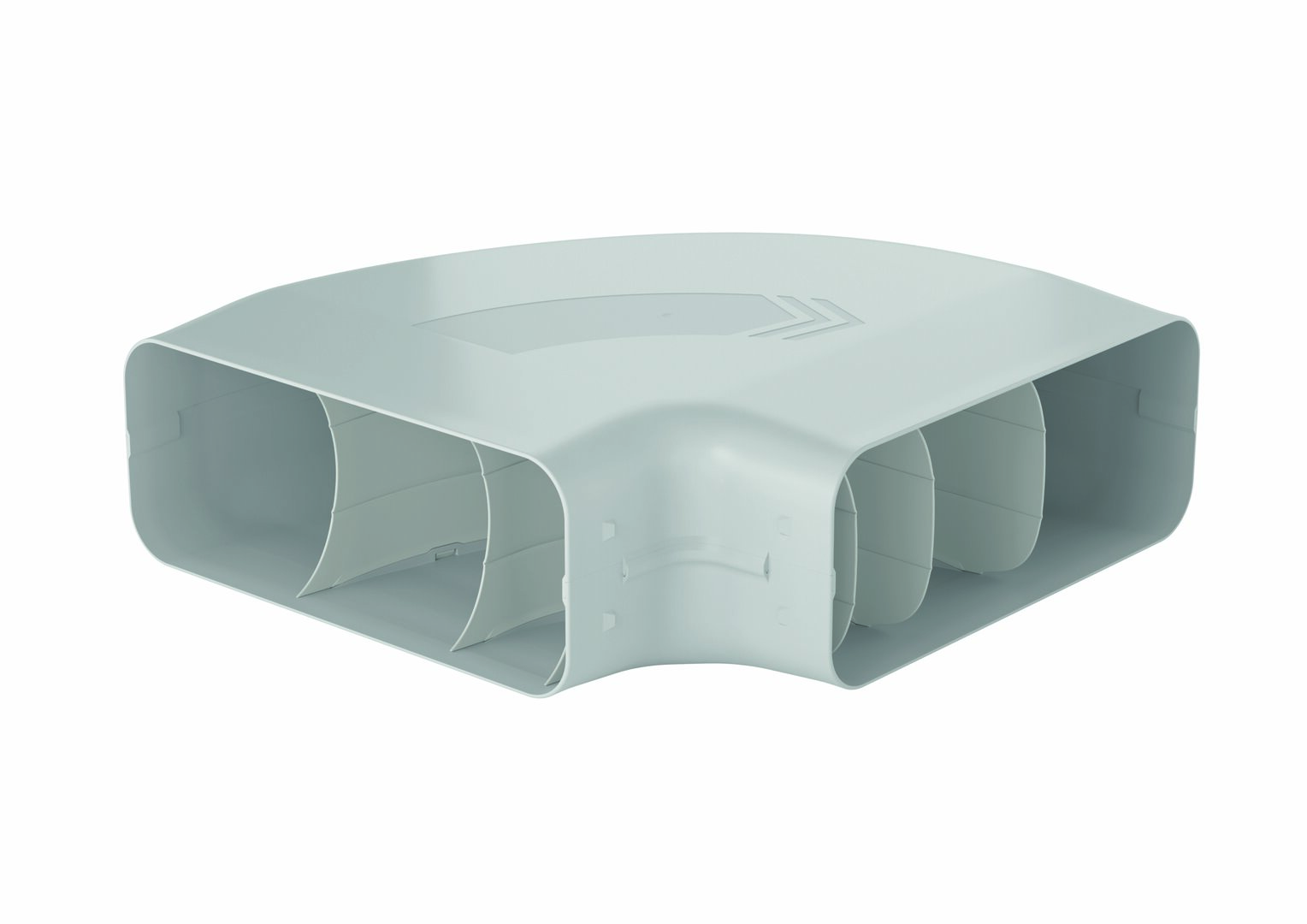 Das stabile COMPAIR® PRIME flow 150 Flachkanal Set-2 dient zur individuellen Verlegung eines Abluftsystems in der Küche. Es besteht aus einem Umlenkstück von Flachkanal auf Rundkanal, das mit einem 100 cm langen Rundrohr verbunden ist. Die hier integrierten Luftleitkörper bewirken eine Optimierung der Luftströmung. Dazu beinhaltet die Abluftkombination drei Flachkanalrohre zu je 100 cm, einen horizontalen Rohrbogen im 90°-Winkel, zwei Verbindungsmuffen sowie ein End-/Übergangsstück. Die sichere Verbindung stellt das inbegriffene Klebeband her.