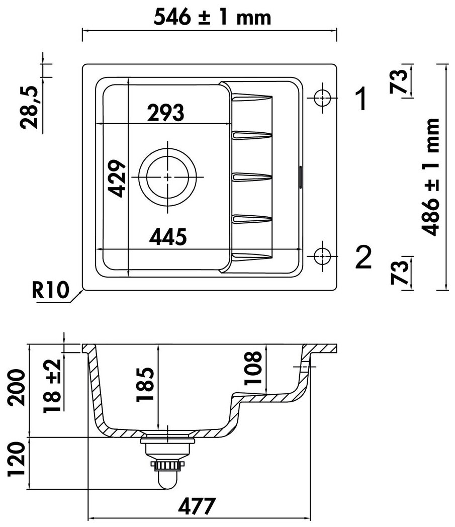 — Ausschnittmaß ca. 550 x 490 mm, R 12 mm