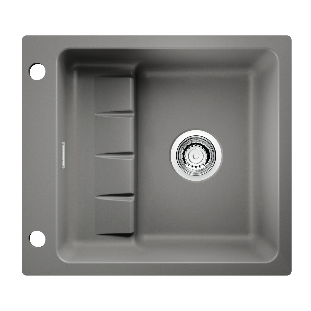 Mit ihrem smartem Stufendesign ist die Einbauspüle PickUP F nicht nur ein Highlight in der Küchenzeile, sondern überzeugt zugleich in puncto Nachhaltigkeit. Für eine kleine Menge Abwasch braucht das Becken nicht komplett gefüllt zu werden. Die Stufe dient als Begrenzung und als Ablagefläche für einzelne Gläser, Becher oder das Frühstücksbesteck. Das spart Wasser und Ressourcen. Gefertigt ist die Einbeckenspüle aus schlag- und kratzfester Keramik. In der täglichen Nutzung erweist sich das unempfindliche Material als besonders pflegeleicht und robust. Zur Auswahl stehen trendgerechte Farb- und Oberflächenausführungen. Das flache Randdesign zeichnet sich durch seine eckenlose Integration in die Arbeitsplatte aus. Dabei ist der Einbau flächenbündig vorgesehen, sodass Spüle und Arbeitsfläche eine elegante Kombination für höchsten Komfort bilden. Dank der reversiblen Einbaumöglichkeit lässt sich die Ebenenspüle individuell in die Arbeitsplatte einpassen. Hierzu sind im gefrästen Flachrand bereits die Lochbohrungen für eine Armatur vorbereitet. Komplettiert wird die Spüle durch ein Korbventil mit verchromter Premium-Drehexzentergarnitur sowie einem Ab- und Überlaufsystem.