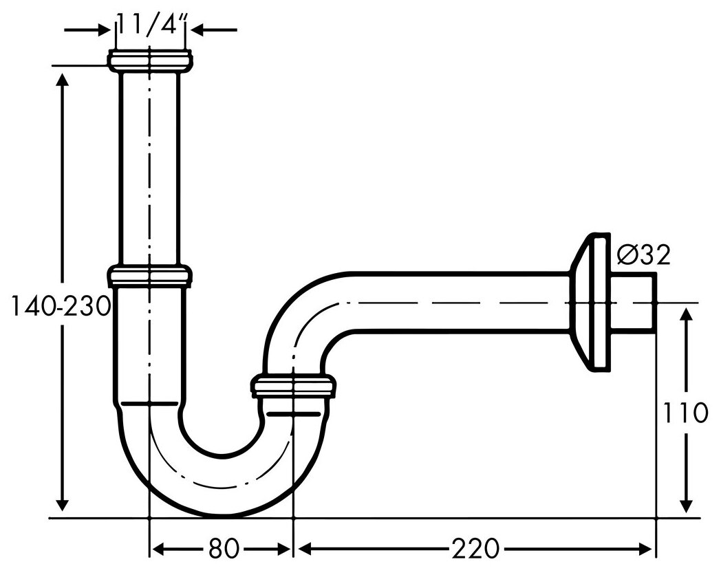 Röhrengeruchsverschluss 4, 1 ¼" x 1 ¼"