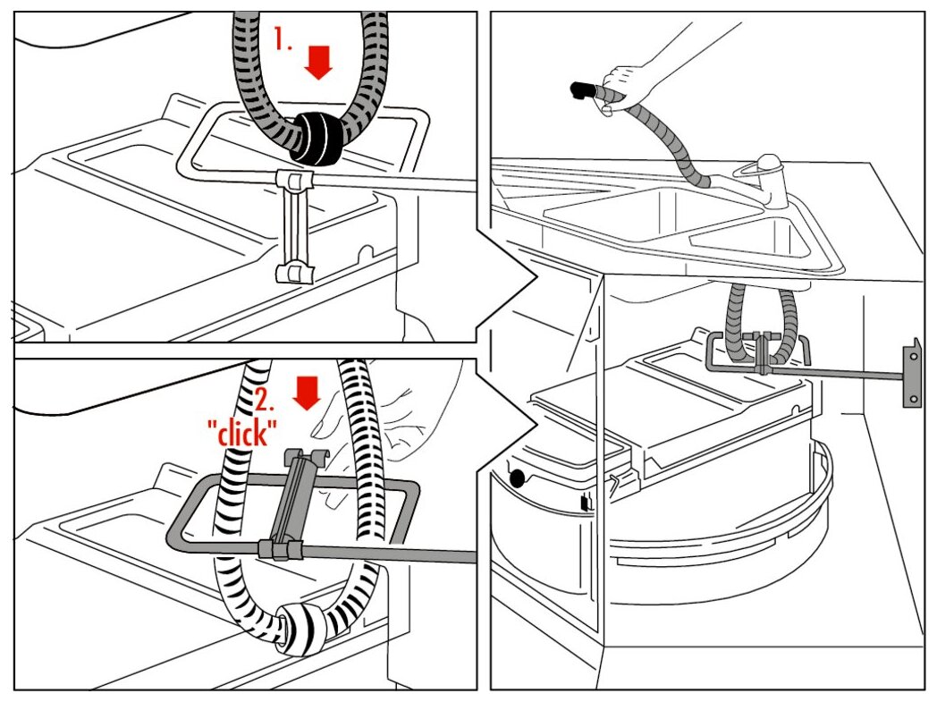 — Zwangsführung des Schlauches in die verbleibenden Freiräume, rechts, links, hinten, oben