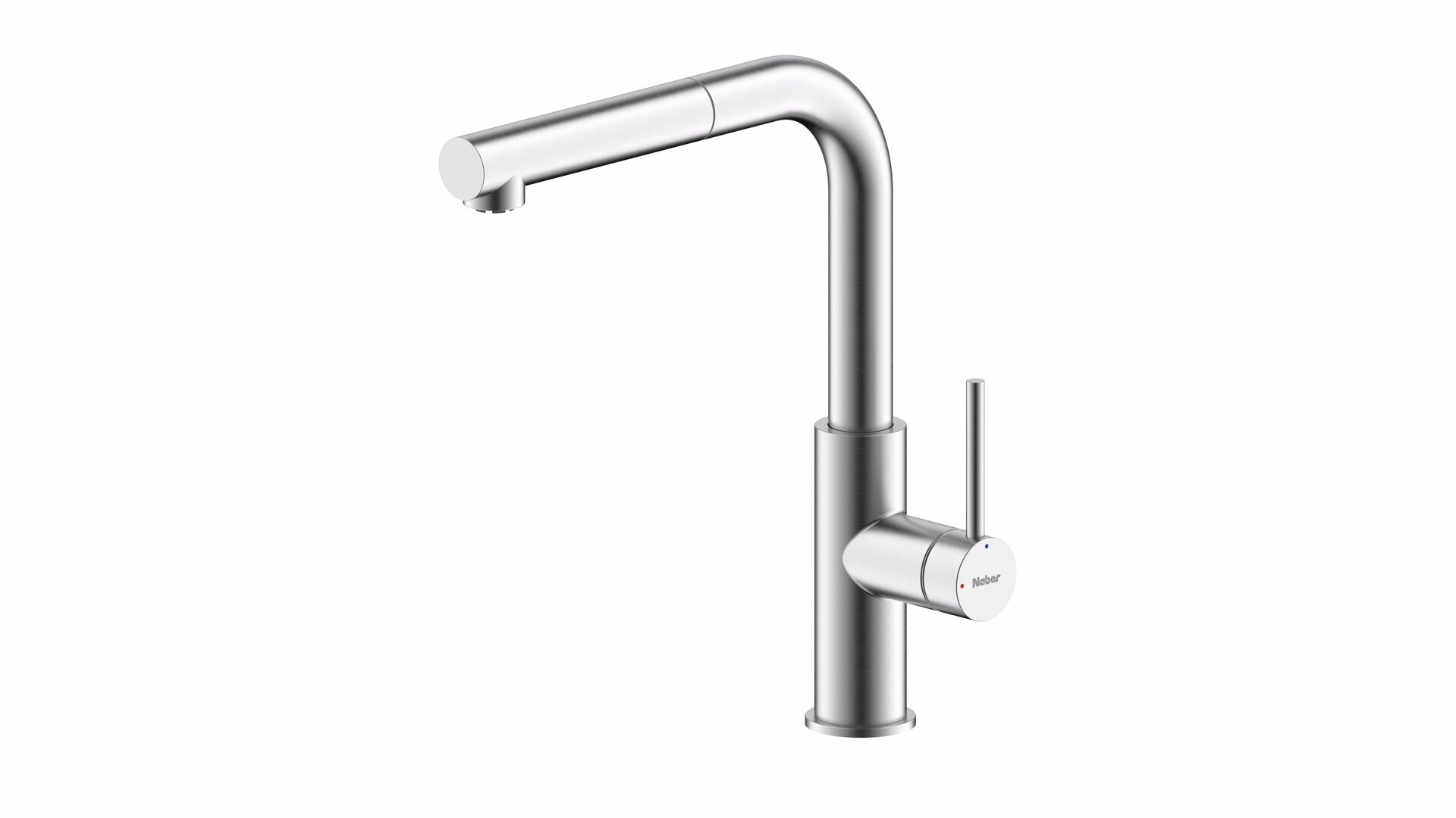 Einhebelmischer. Mit schwenk-/herausziehbarem Auslauf, seitlichem Hebel und Keramikkartusche.