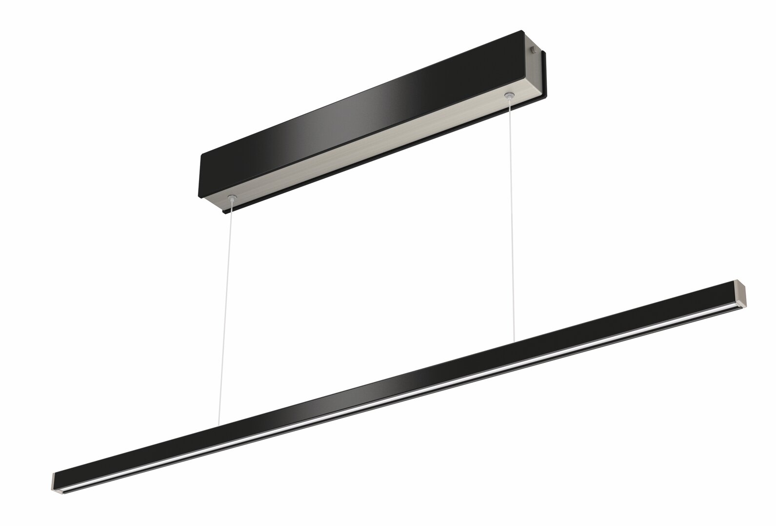 Pendelleuchte. Aluminiumgehäuse edelstahlfarbig, Abdeckung Acrylglas. Inkl. Konverter und Fernbedienung.